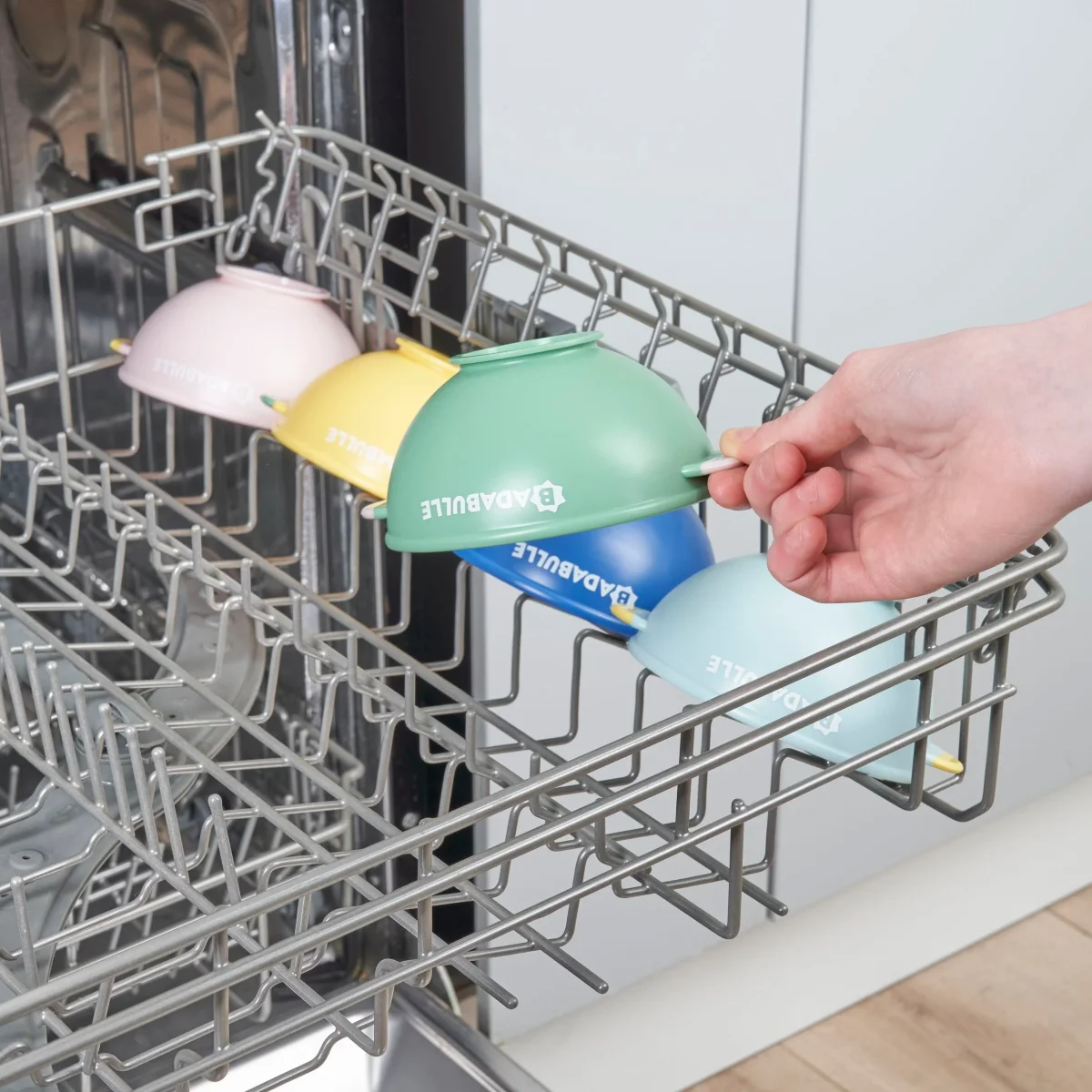 - 5 bols de 330ml avec 5 couvercles hermétiques et 1 ventouse anti-dérapante