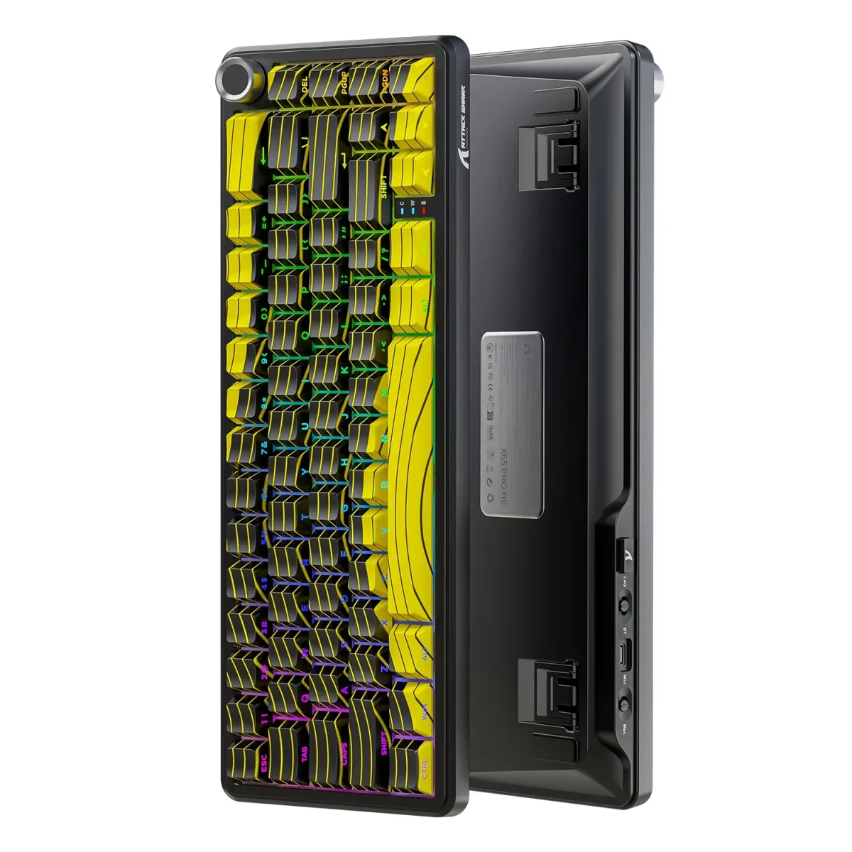 Attack Shark X65PRO HE Clavier 60 % ANSI sans fil Hall Effect ultra réactif Noir/Jaune