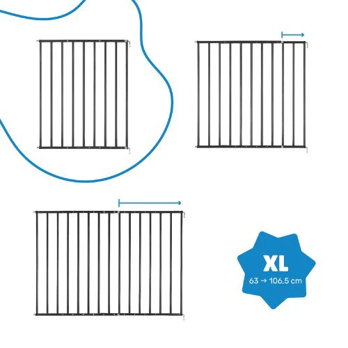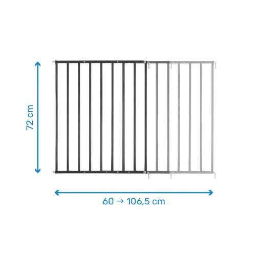• Facilement réglable, la barrière convient aux ouvertures de 60 à 107 cm