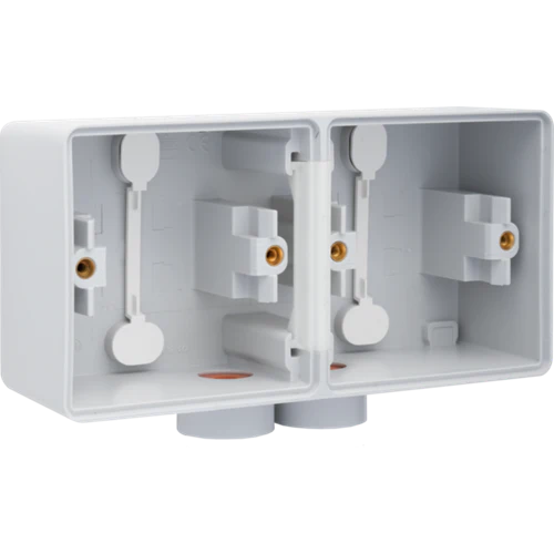 Boîte en saillie double horizontal étanche aux projections d’eau avec une entrée M20 double pour deux fonctions, grey.
