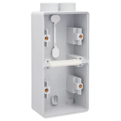 Cette boîte en saillie double verticale avec une entrée M20 double convient à deux fonctions. L’ensemble est étanche aux projections d’eau, ce qui le rend extrêmement bien adapté à une utilisation dans les zones humides et les environnements exigeants. Couleur de finition: grey