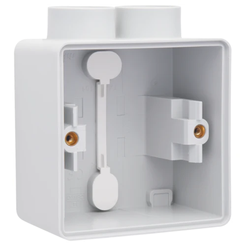 - Matériau boîte en saillie: Le boîtier en saillie est en polypropylène résistant aux chocs, anti-poussière, sans halogènes et auto-extinguible (UL94-V2/1,6 mm).