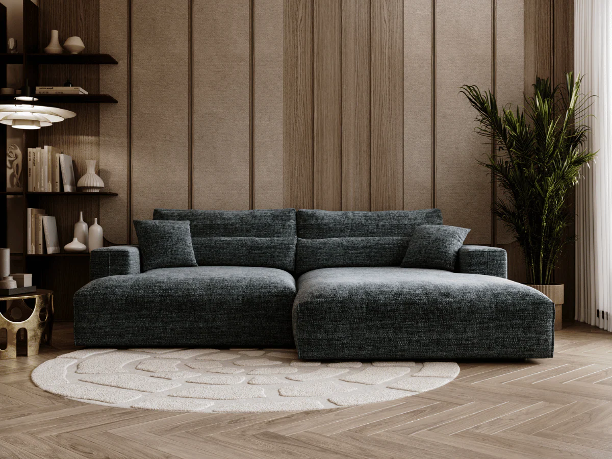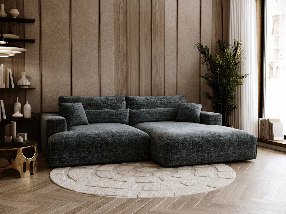 Le canapé Haussmann est un canapé d’angle ultra confortable, conçu pour offrir un soutien optimal et un confort prolongé. Avec son assise en ressorts ondulés et sa mousse polyuréthane de densité 30 kg/m³, il garantit une assise agréable et résolument confortable. Le dossier, composé de coussins en mousse polyuréthane T21/30, assure un soutien parfait, que vous soyez assis ou allongé. Son cadre robuste en bois et panneau de meuble lui confère une solidité exceptionnelle, vous garantissant une durabilité maximale. Ce canapé d’angle est disponible en version droite ou gauche, selon l’agencement de votre espace. Son dos entièrement tapissé permet de le placer au centre de la pièce sans compromettre son esthétique. De plus, le canapé est vendu avec tous les coussins visibles sur la photo, ajoutant une touche de confort supplémentaire. Que vous recherchiez un canapé spacieux et pratique ou un canapé design pour votre salon, le canapé Haussmann est la solution idéale pour allier élégance et confort au quotidien.