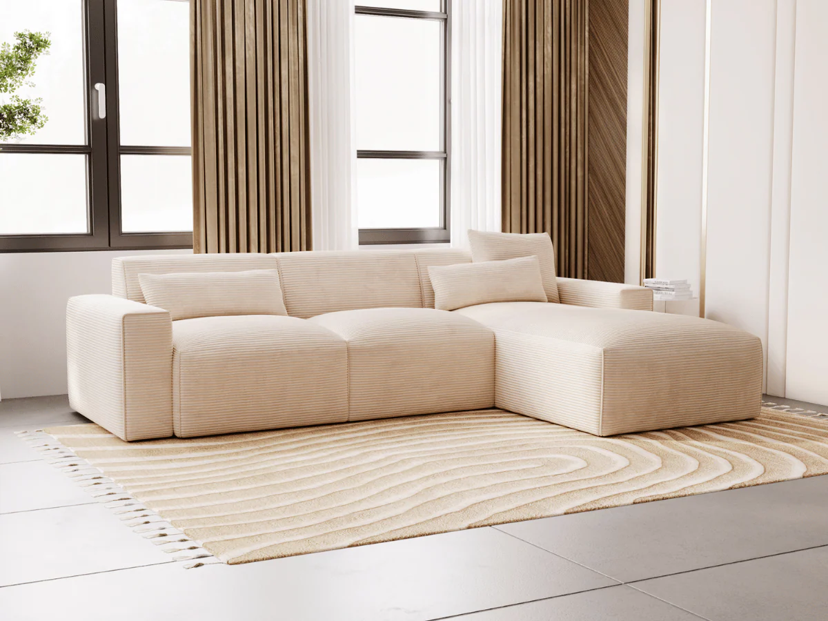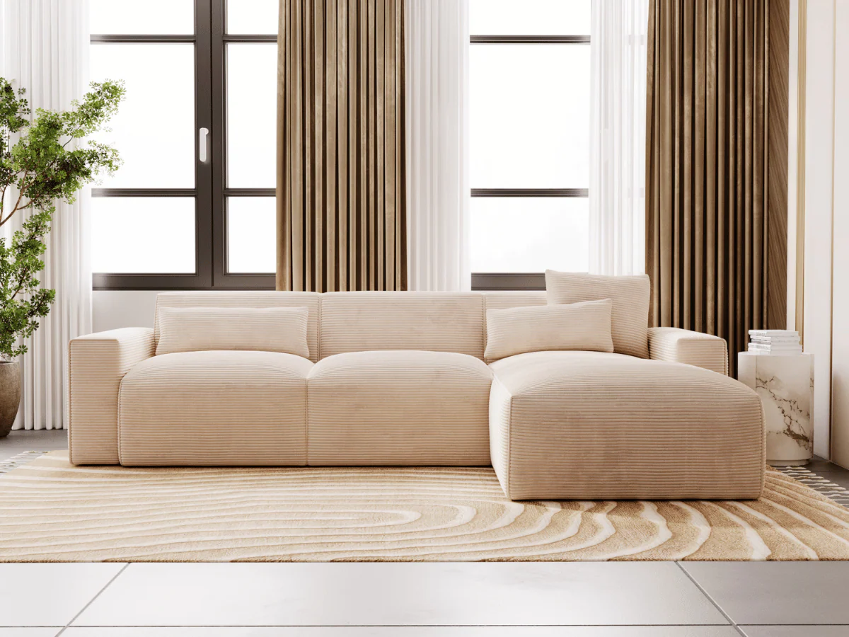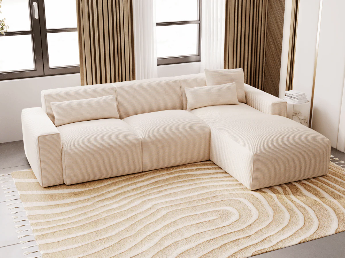 Canapé d’angle Madeleine – Grand confort en velours côtelé