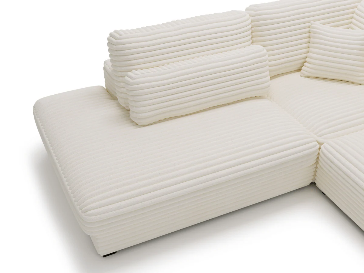 Le canapé Vendôme est le choix parfait pour ceux qui recherchent un confort exceptionnel et un design moderne. Sa structure en L s’adapte parfaitement à tout type d’espace, offrant à la fois une fonction de couchage pratique et un compartiment de rangement pour la literie. Ce canapé est conçu avec un tissu animal friendly, garantissant une solution idéale pour les foyers avec des animaux. Son velours côtelé de grande épaisseur allie élégance et résistance, tout en étant facile à entretenir et résistant aux taches. Le cadre du canapé est fait de bois et de panneau de meuble, assurant une durabilité optimale. Grâce à la mousse polyuréthane de densité 30 kg/m³, le confort est garanti, offrant un soutien agréable pour une relaxation parfaite. De plus, le dos du canapé est entièrement tapissé, ce qui lui permet d’être placé où vous le souhaitez sans compromettre l’esthétique. Ce canapé fonctionnel et élégant s’intègre facilement dans tous les intérieurs tout en apportant une touche de modernité.