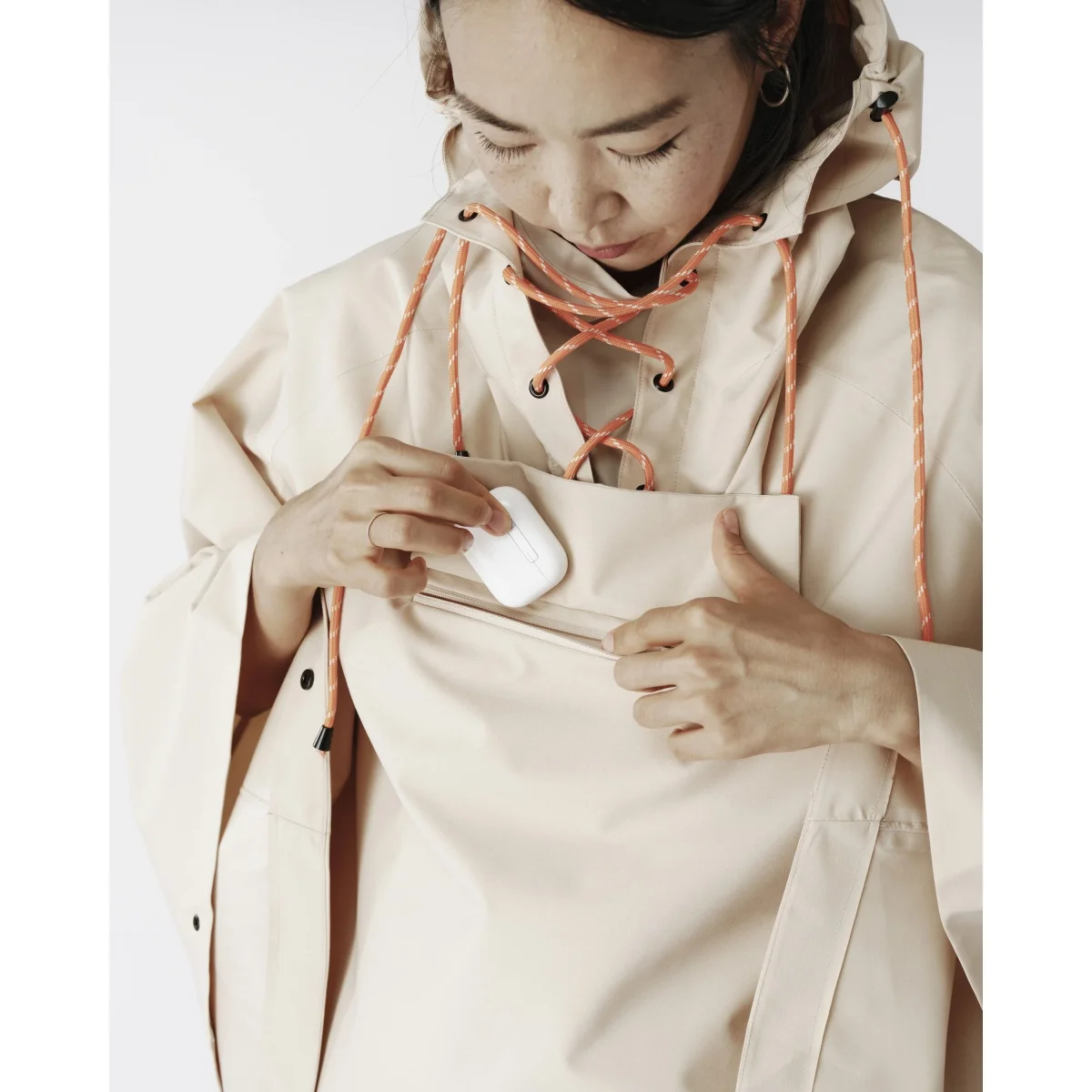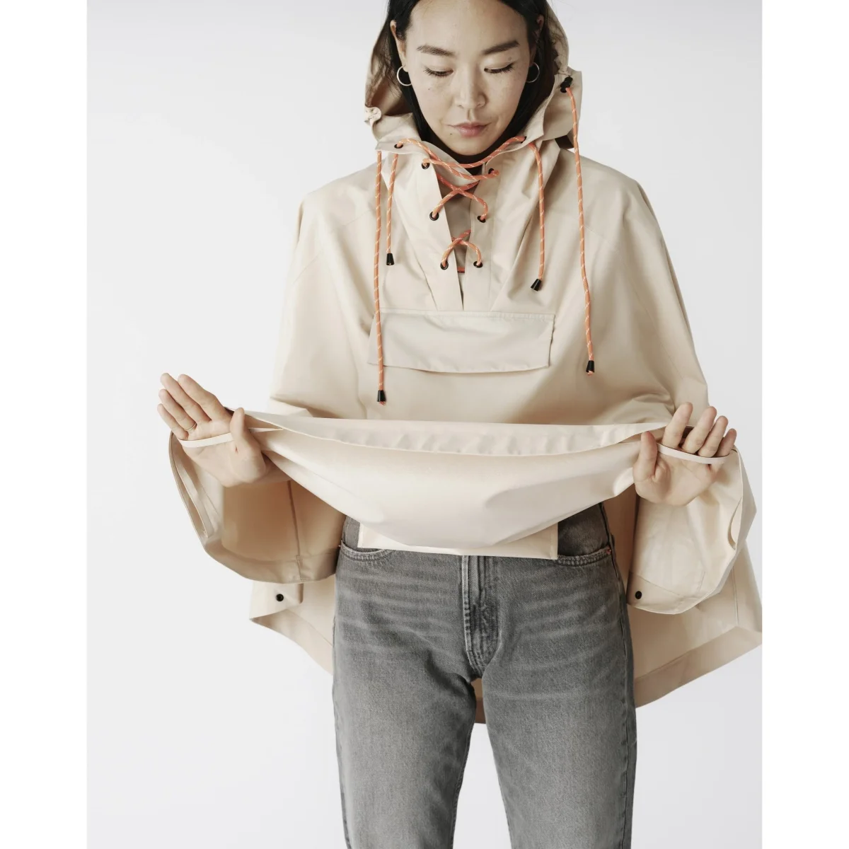 Optez pour LOU V02, un poncho imperméable qui allie fonctionnalité, style et durabilité pour toutes les femmes qui font du vélo.