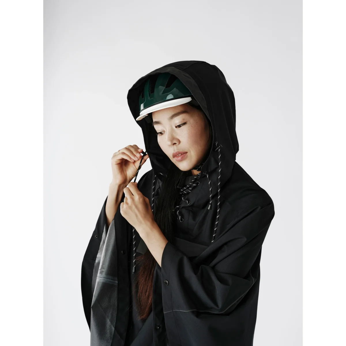 Optez pour LOU V02, un poncho imperméable qui allie fonctionnalité, style et durabilité pour toutes les femmes qui font du vélo.