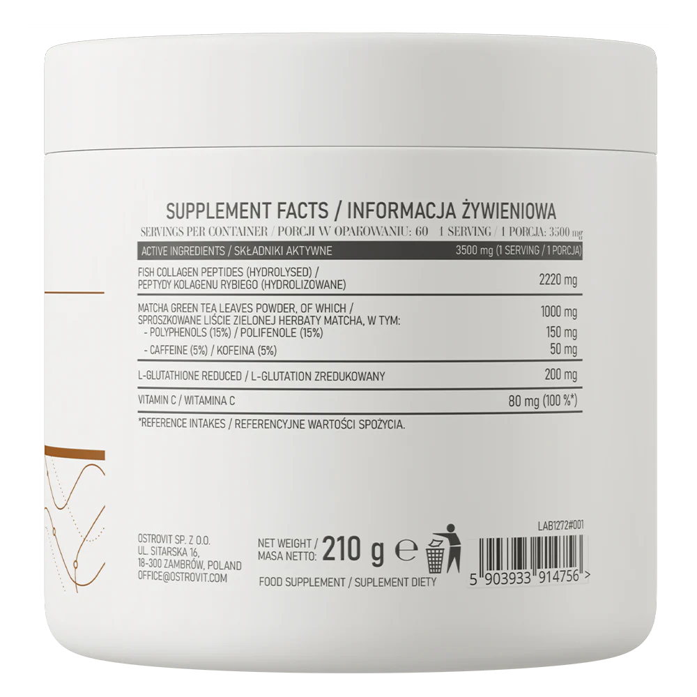 OstroVit Collagen + Matcha représente l’alliance parfaite entre la beauté et l’énergie dans un seul produit révolutionnaire. Cette formule innovante en poudre combine quatre ingrédients premium soigneusement sélectionnés pour transformer votre routine bien-être. Chaque portion délivre une synergie puissante entre le collagène marin hydrolysé de type I, le thé vert matcha japonais authentique, le L-glutathion réduit et la vitamine C.