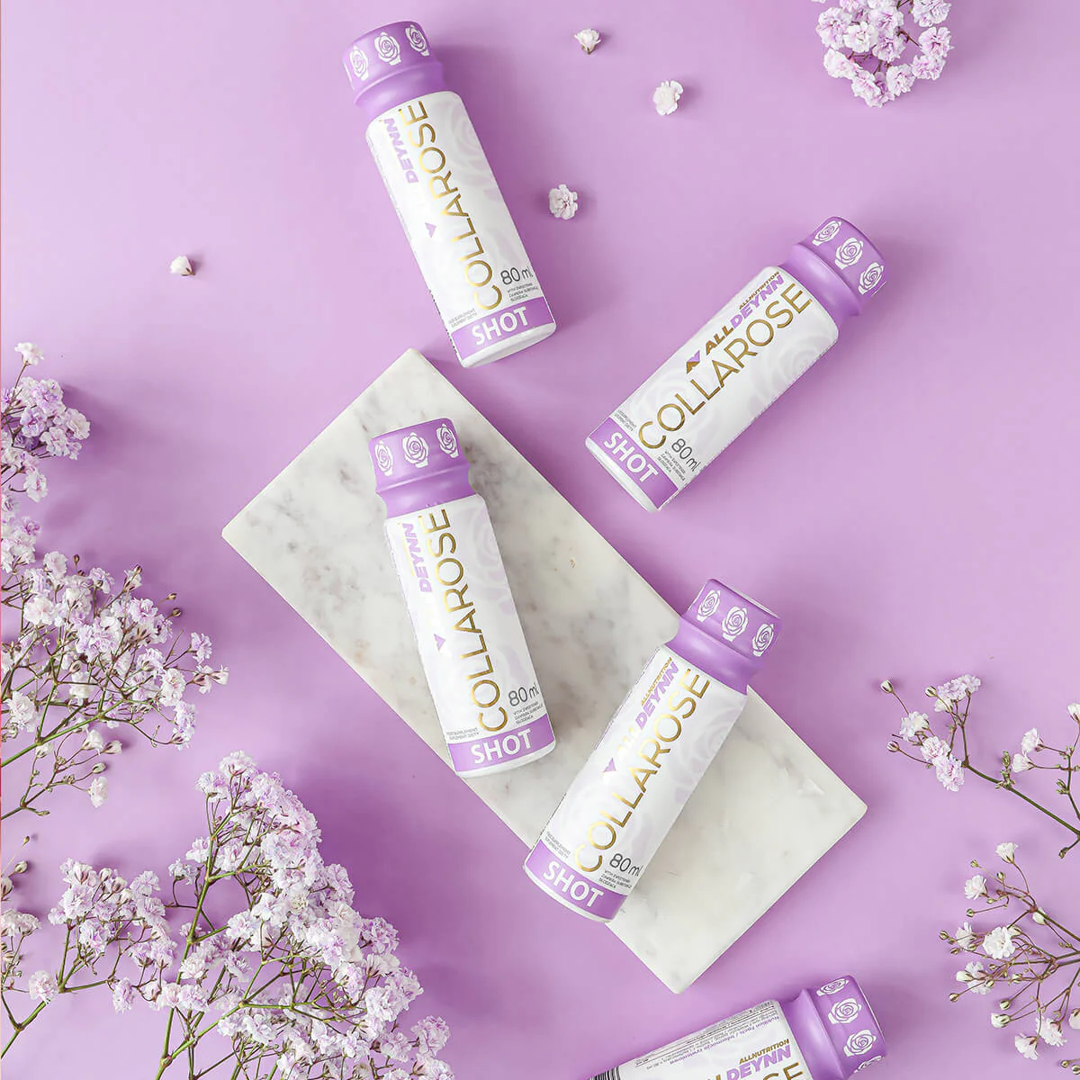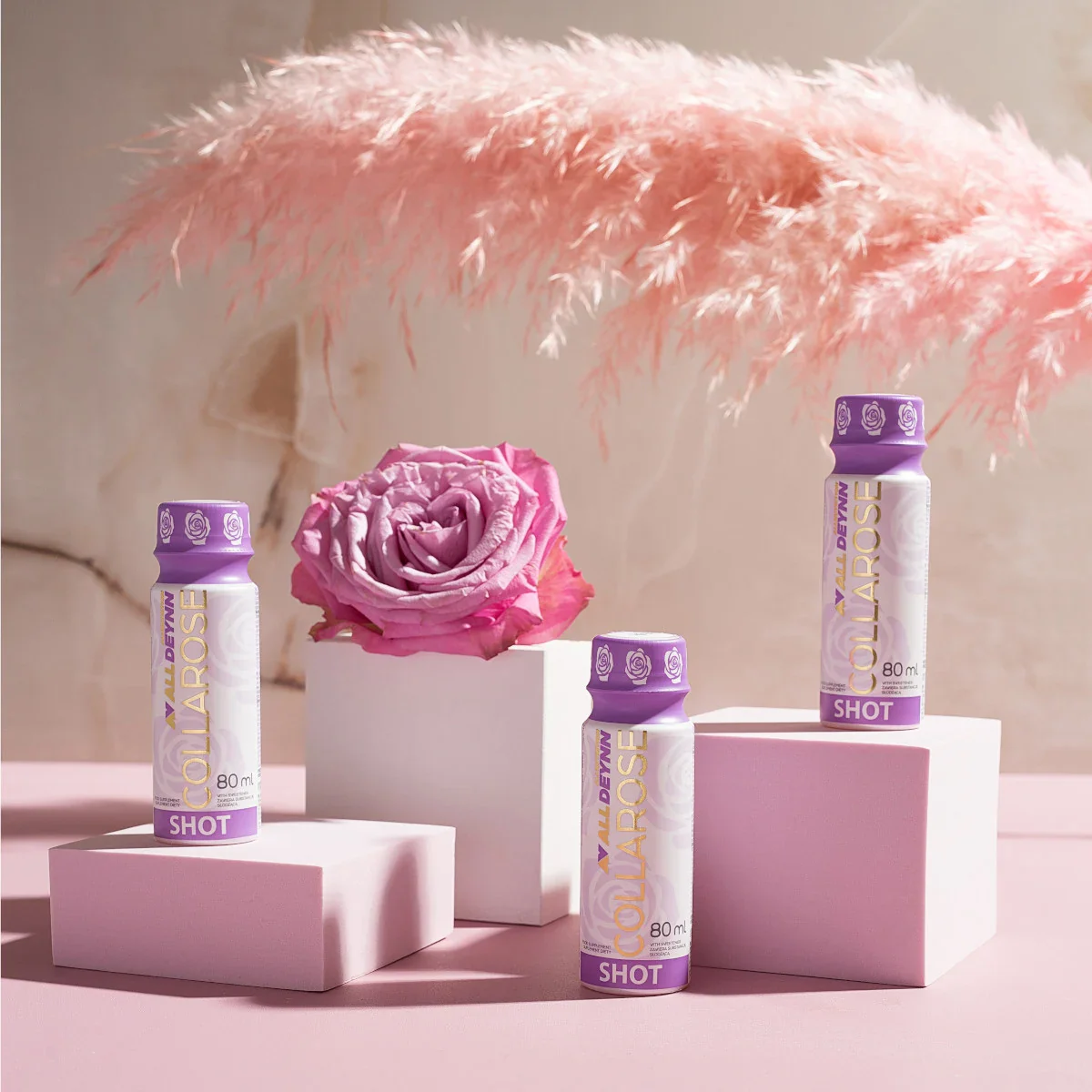ALLDEYNN COLLAROSE SHOT est une boisson liquide enrichie en collagène hydrolysé, conçue pour améliorer l’élasticité et l’hydratation de la peau, renforcer les cheveux et les ongles, et soutenir la santé des articulations.