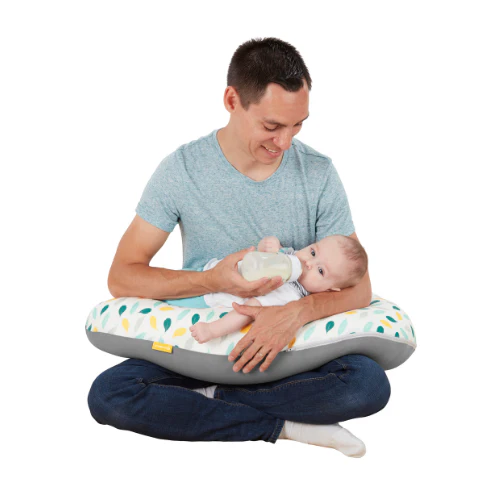 - Maintient bébé à la bonne hauteur pendant l’allaitement ou le biberon. Soulage dos et bras.