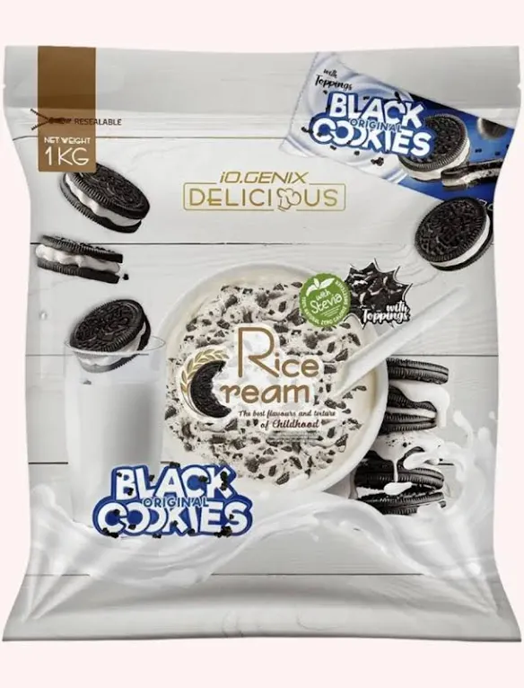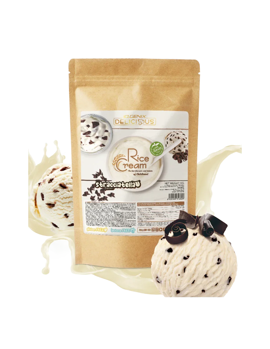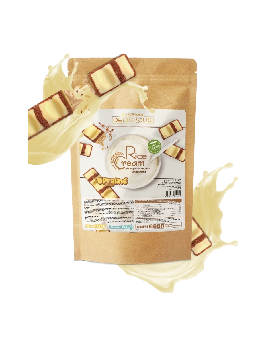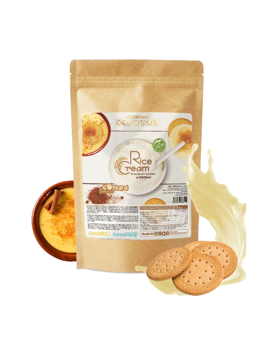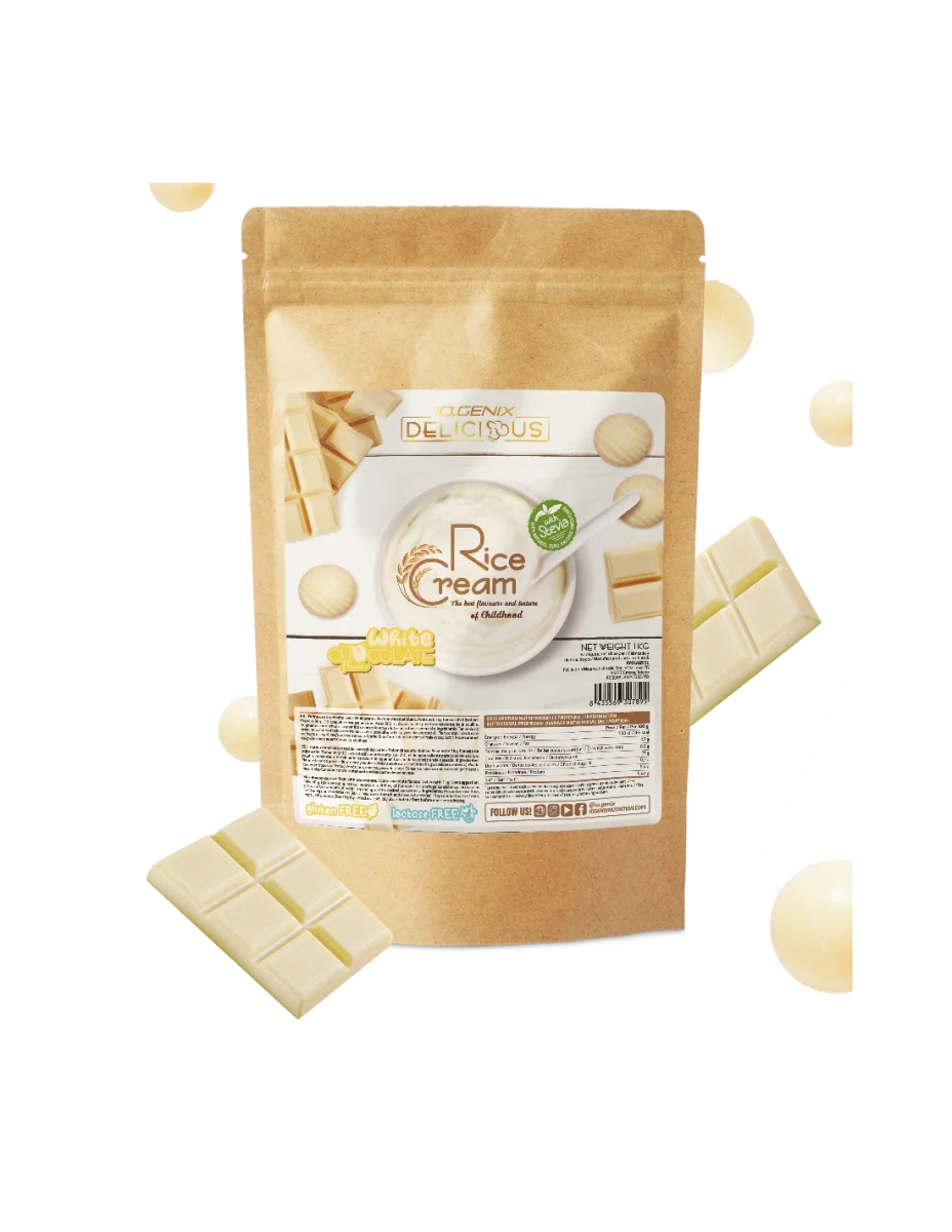 La Crème de Riz IO Genix est un produit en poudre à base de farine de riz précuite et finement broyée.