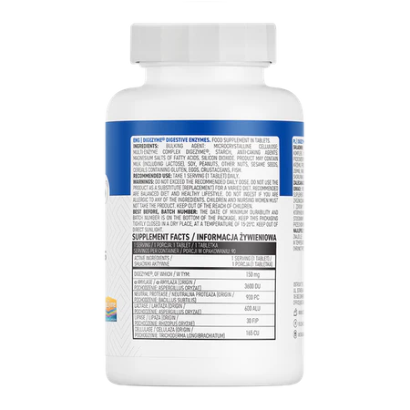 Le Digezyme 90 comprimés d’OstroVit est un complément qui utilise un complexe multi-enzymatique breveté, DigeZyme®, conçu pour améliorer la digestion.