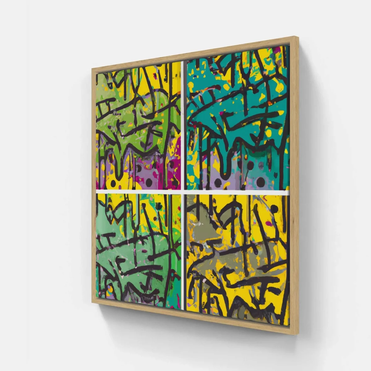 Retrouvez la nostalgie des années 1980 avec cette toile imprimée de graffiti. Avec ses couleurs vives et audacieuses et son côté old-school, cette toile élégante apportera une atmosphère cool et urbaine à n’importe quelle pièce. Parfaite pour les amateurs d’art graffiti, cette toile apportera un peu de vie à votre espace ! #graffiti #1980s #oldschool #vibrant #colorful #canvas #printed #streetart #style #urban #art