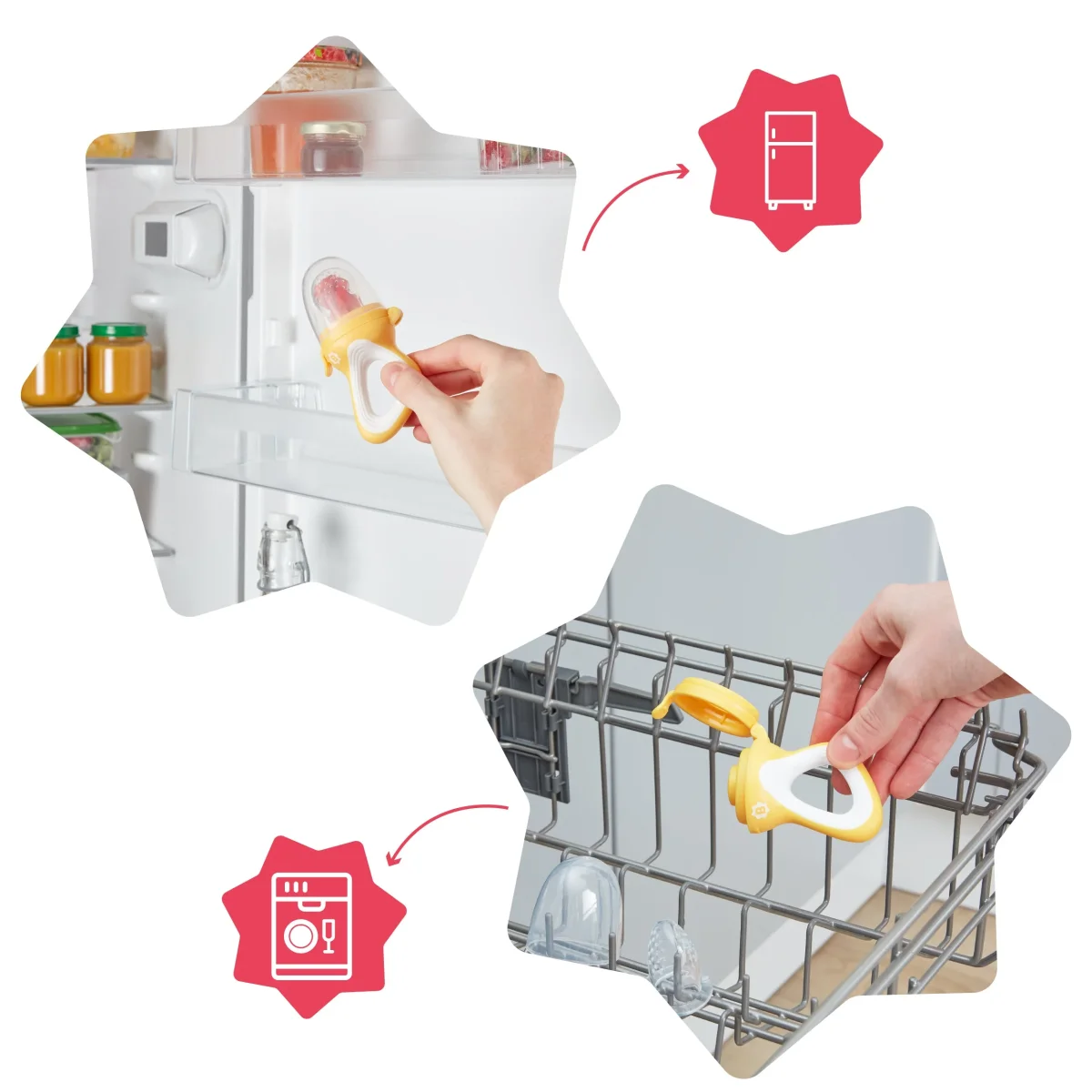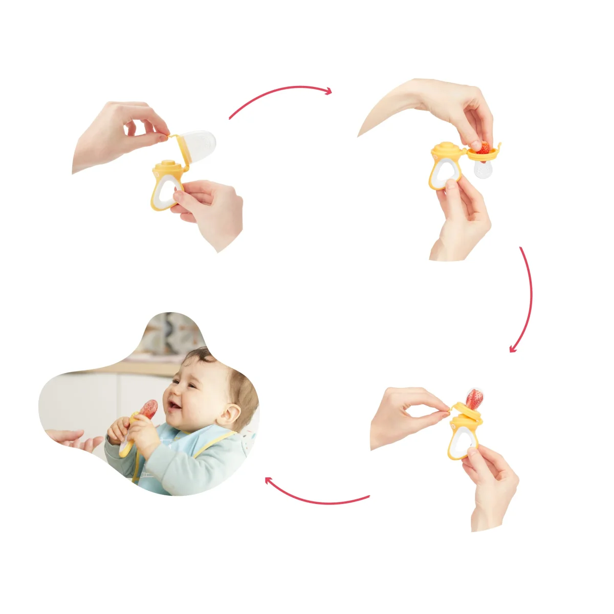 L’indispensable pour la diversification alimentaire ! Manche antidérapant et adapté aux mains des enfants Tétine en silicone alimentaire souple Capuchon inclus Apaise les poussées dentaires Facile à nettoyer