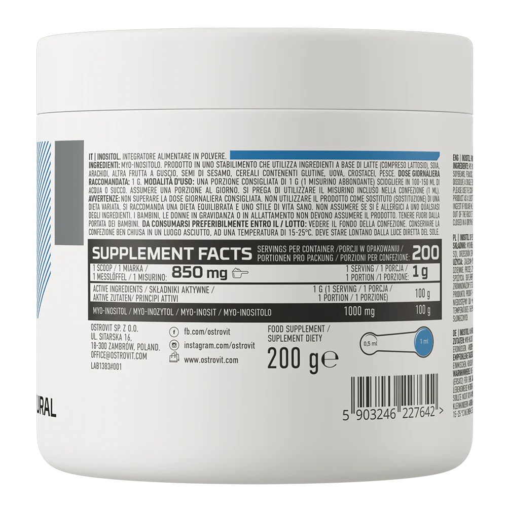 OstroVit Inozytol représente la pureté absolue en supplémentation d’inositol avec sa formule mono-ingrédient de myo-inositol 100% pur. Cette poudre ultra-fine délivre 1000mg de myo-inositol par portion dans sa forme la plus biodisponible pour une efficacité maximale.