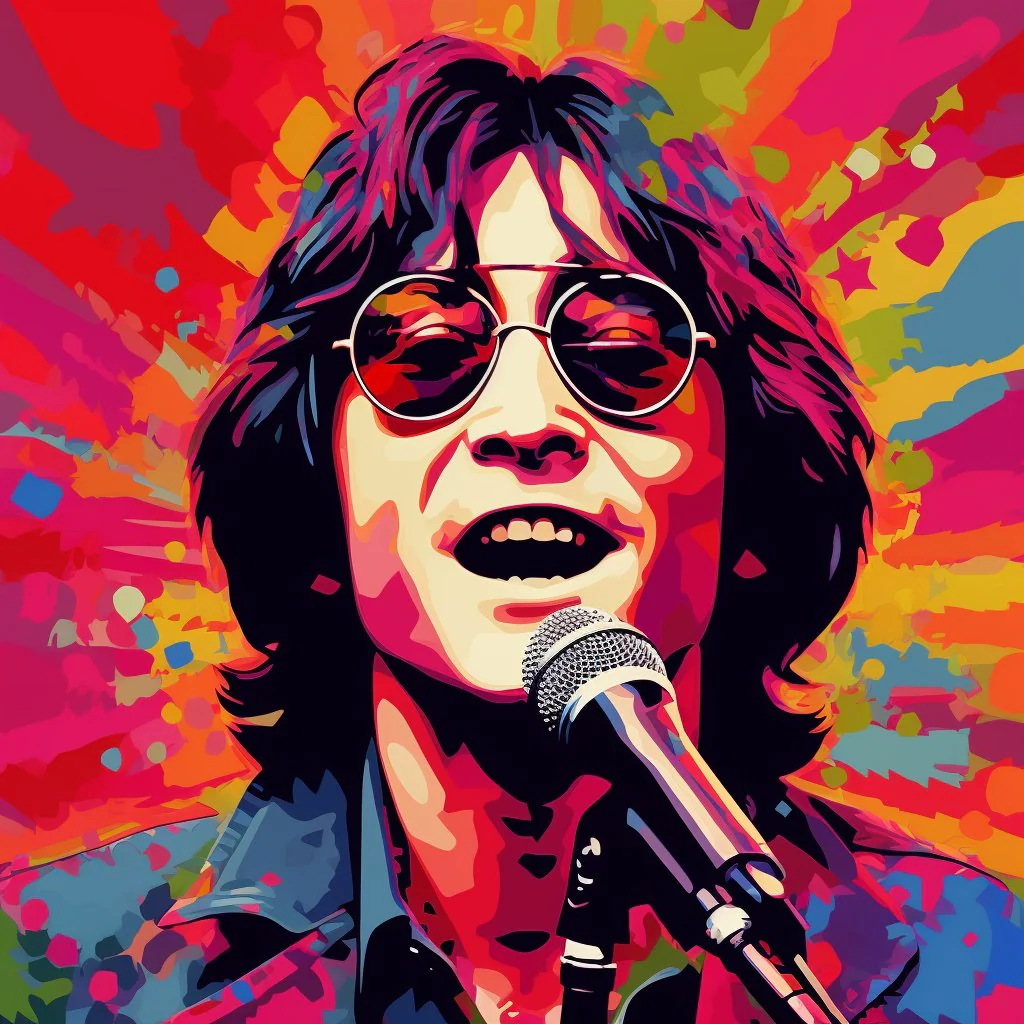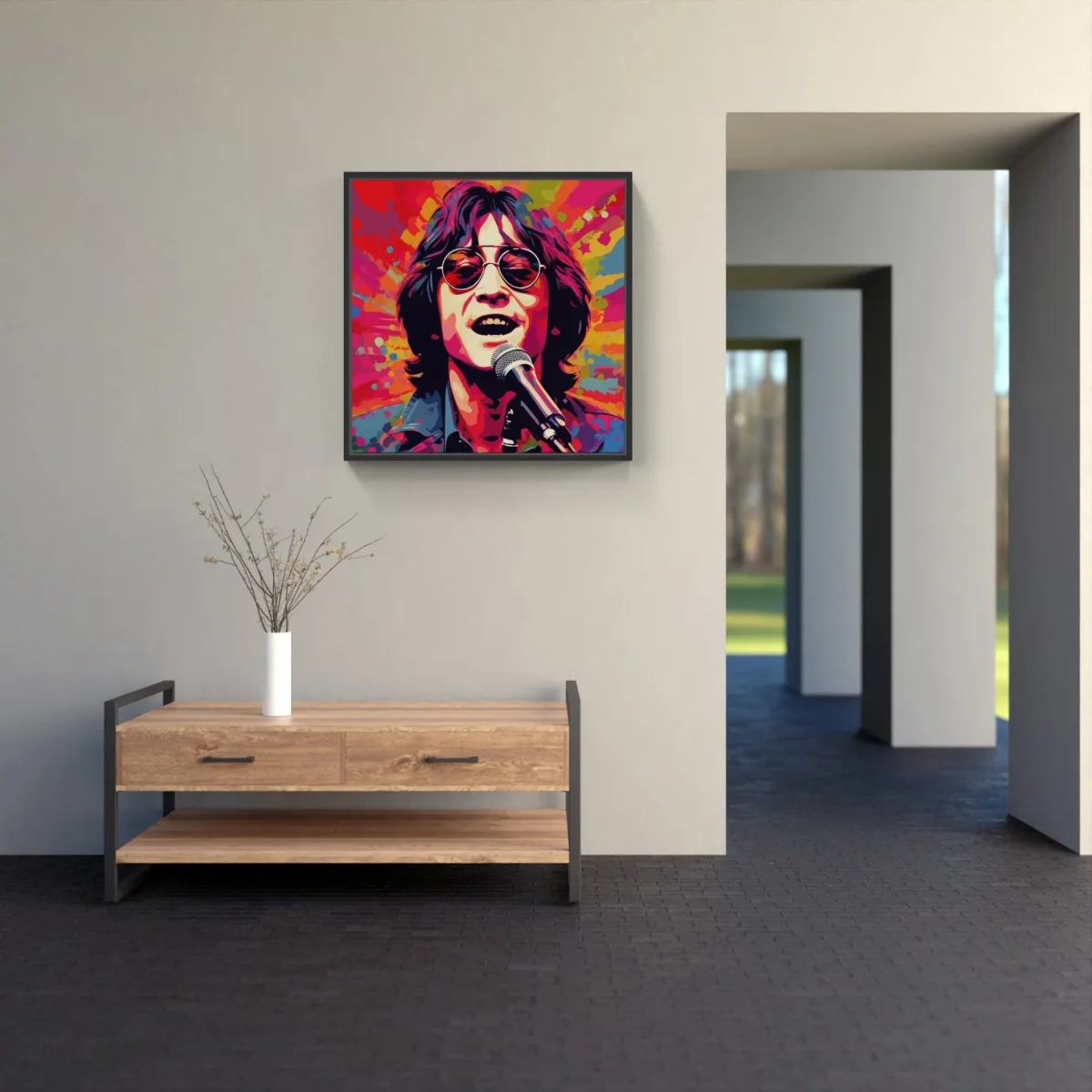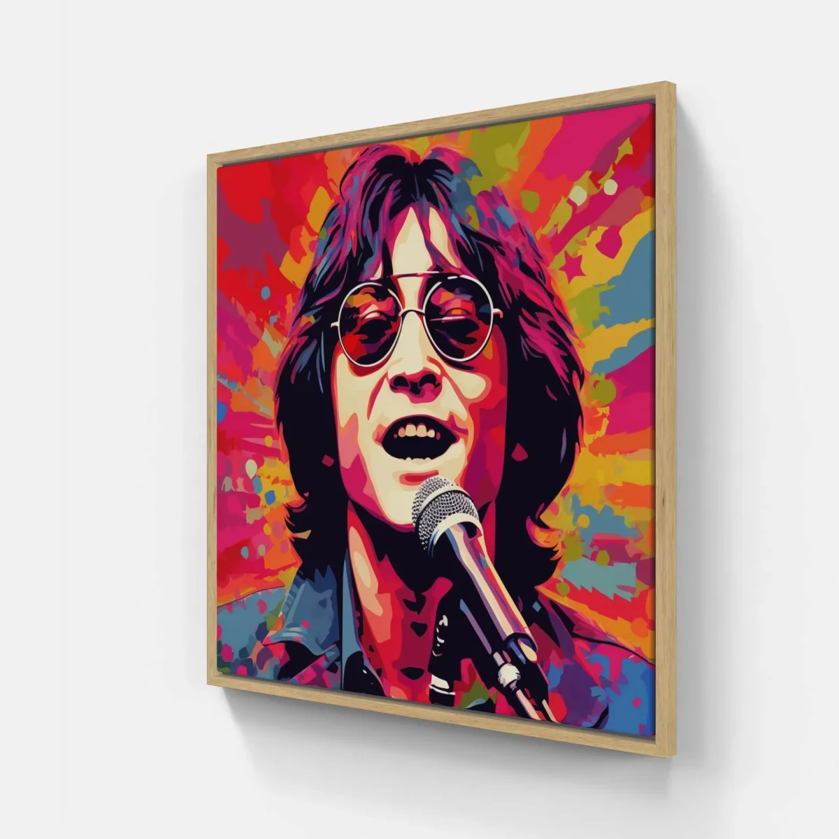Lennon intemporel transformé : Notre canva imprimé Pop Art Lennon célèbre la musique et la vision dans un vibrant hommage à la culture pop.
