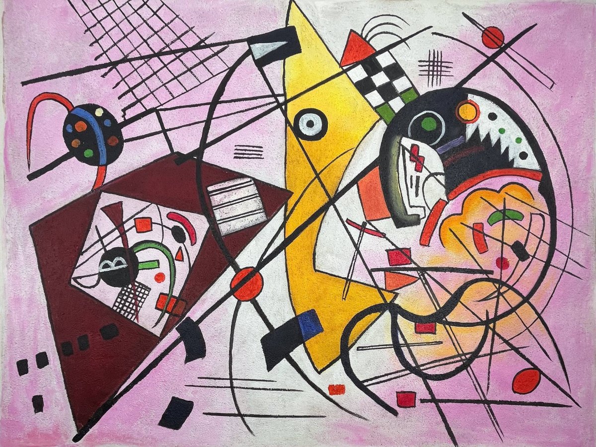 - Technique : Peinture à l’huile sur toile, employant des techniques qui respectent l’approche révolutionnaire de Kandinsky envers l’abstraction.
