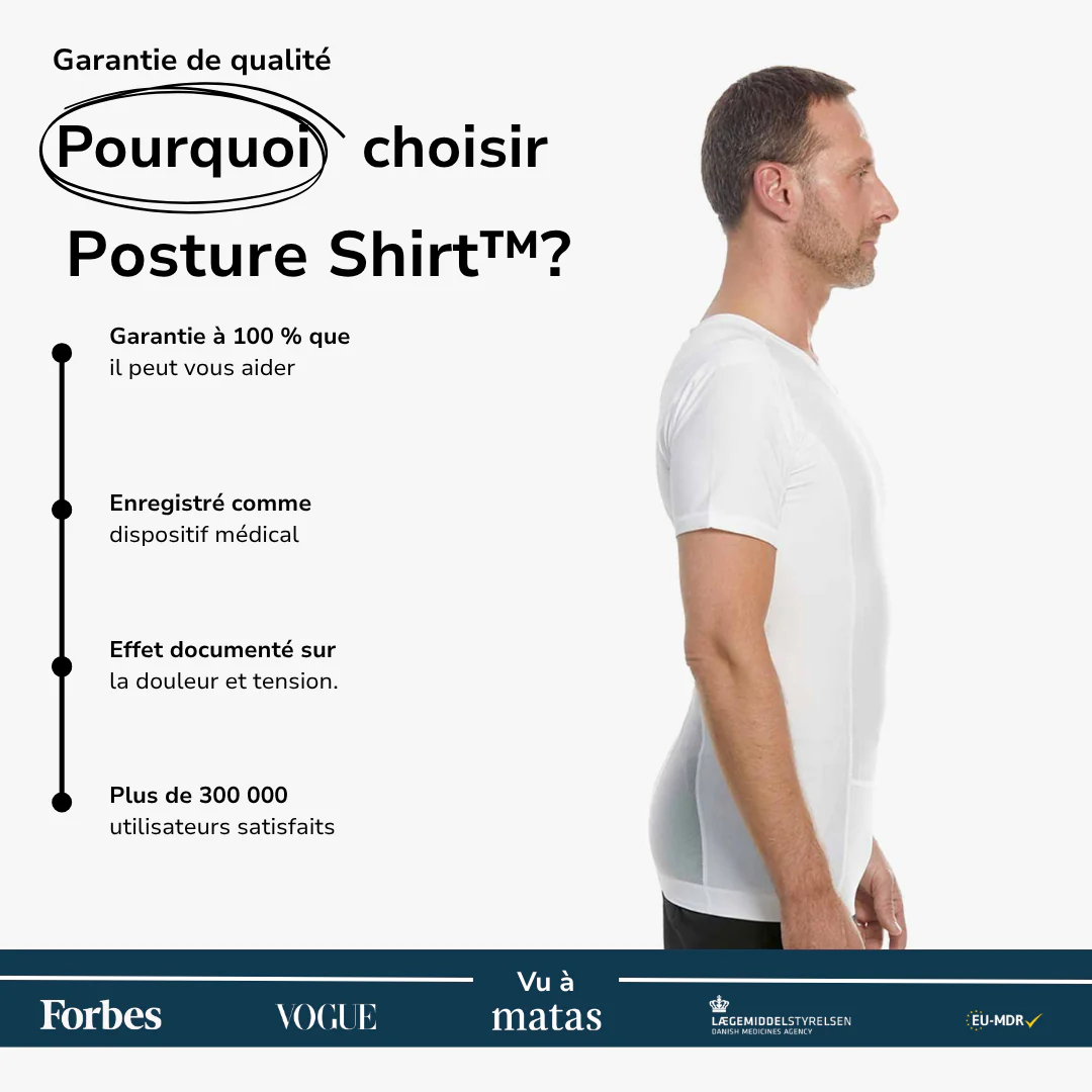 Améliorez votre posture avec Posture Shirt™ pour homme qui soutient et soulage le dos, que vous soyez active ou assise. Notre t-shirt posture pour homme est conçu avec la technologie brevetée NeuroBand™, qui active et stimule les muscles. Le Posture Shirt™ d’Anodyne® est un produit à l’efficacité démontrée et possède le marquage CE en tant que dispositif médical.
