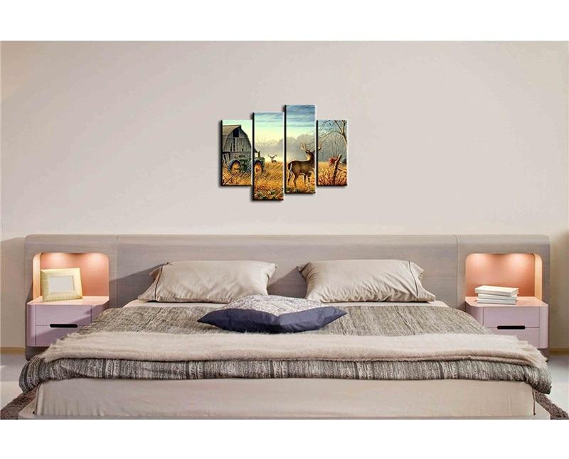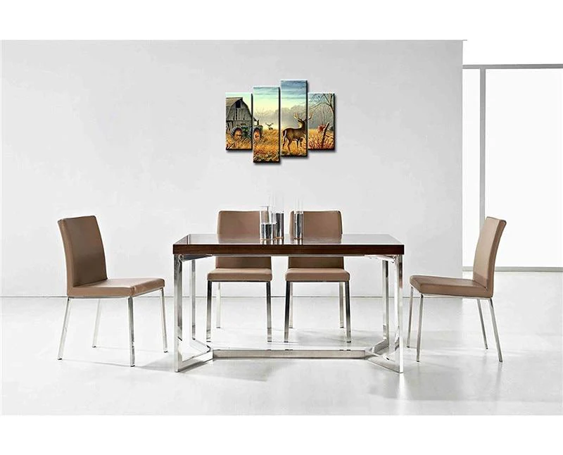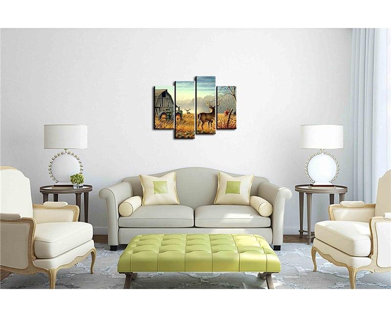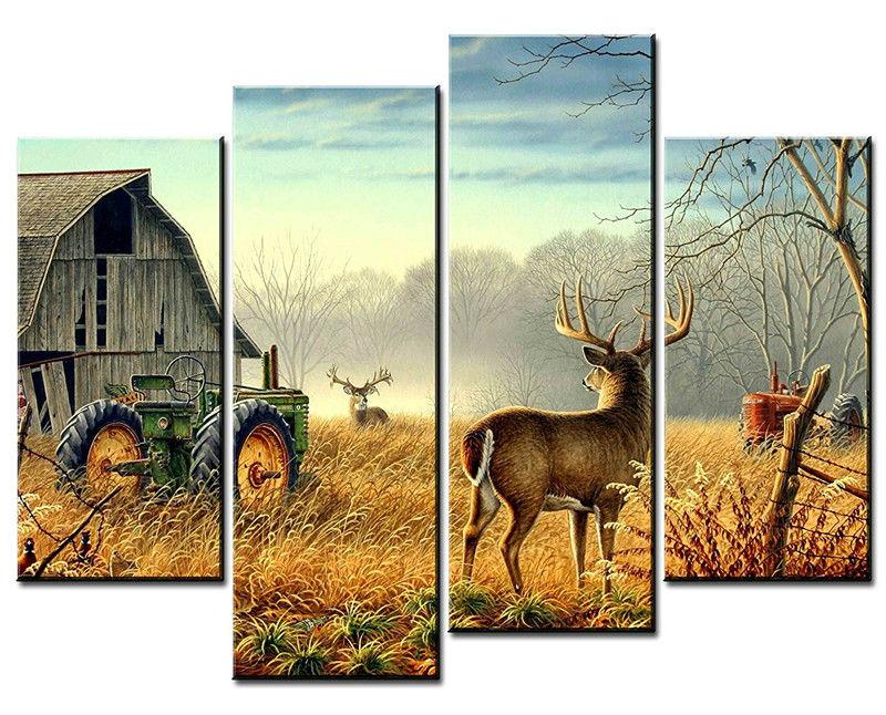 – Tableau déco murale de la nature reprenant ses droits sur les hommes par l’image de cerfs aux abords d’une vieille ferme abandonnée.