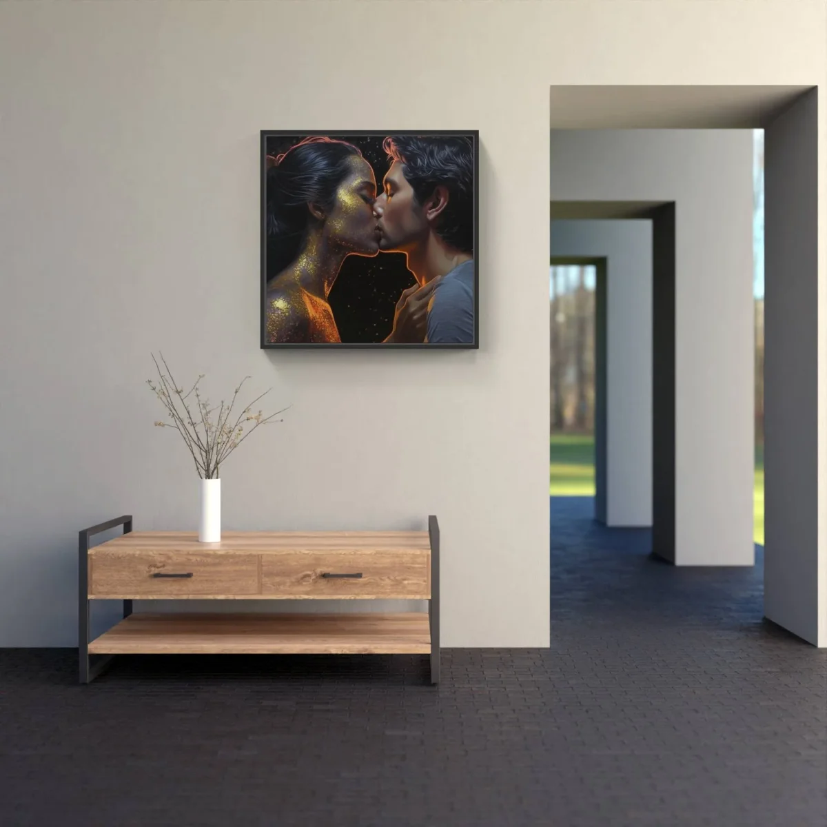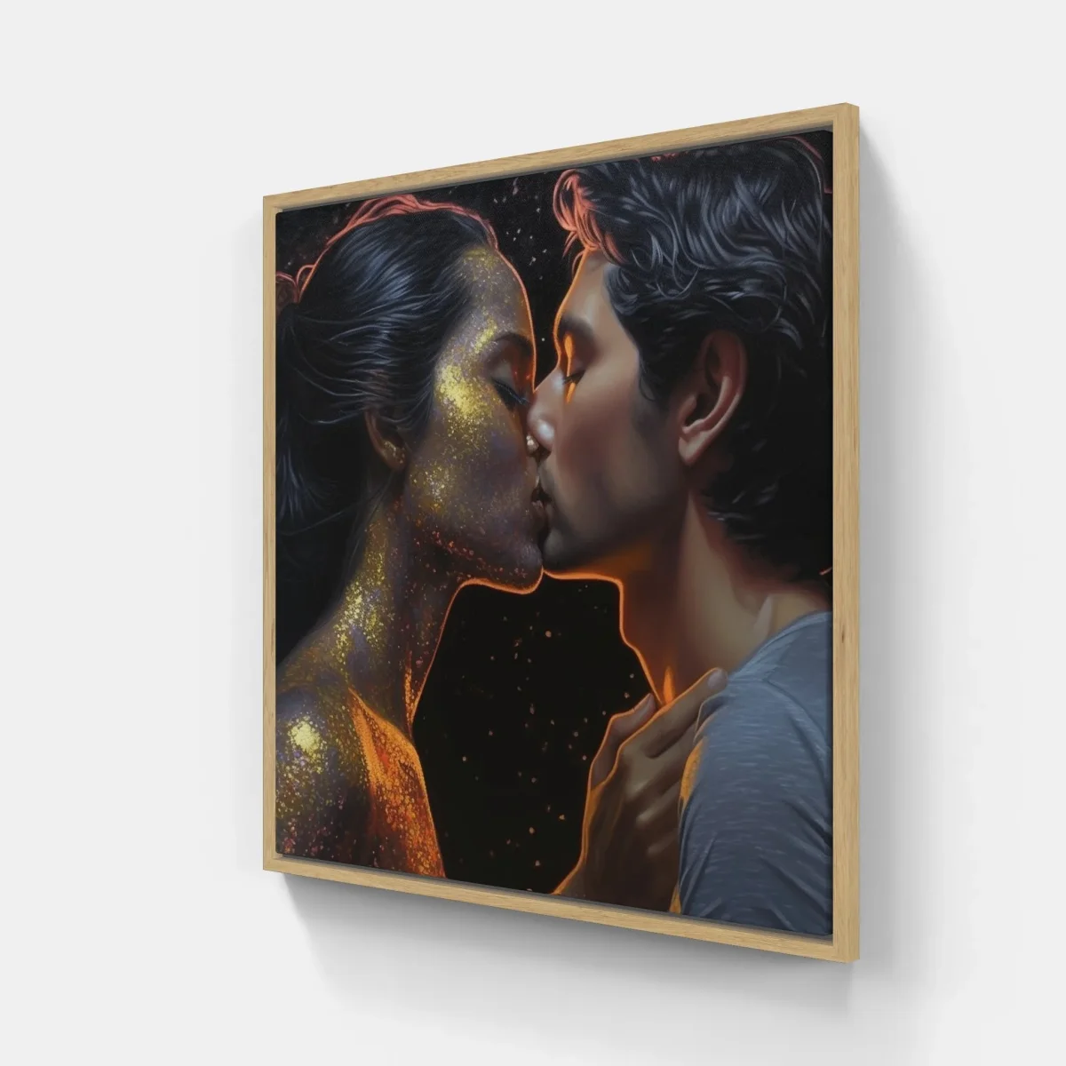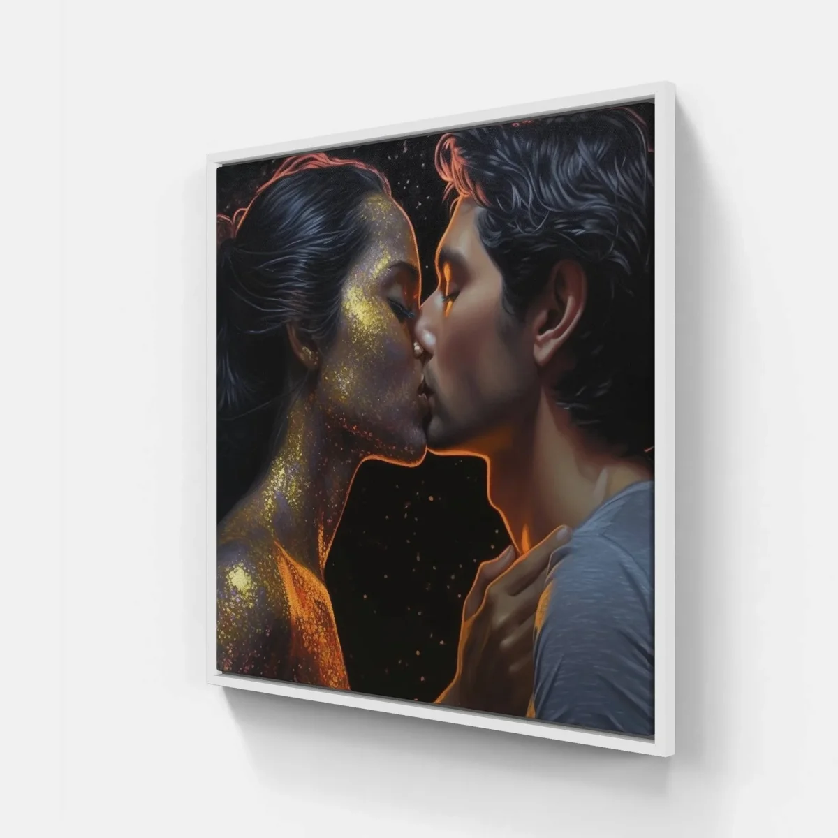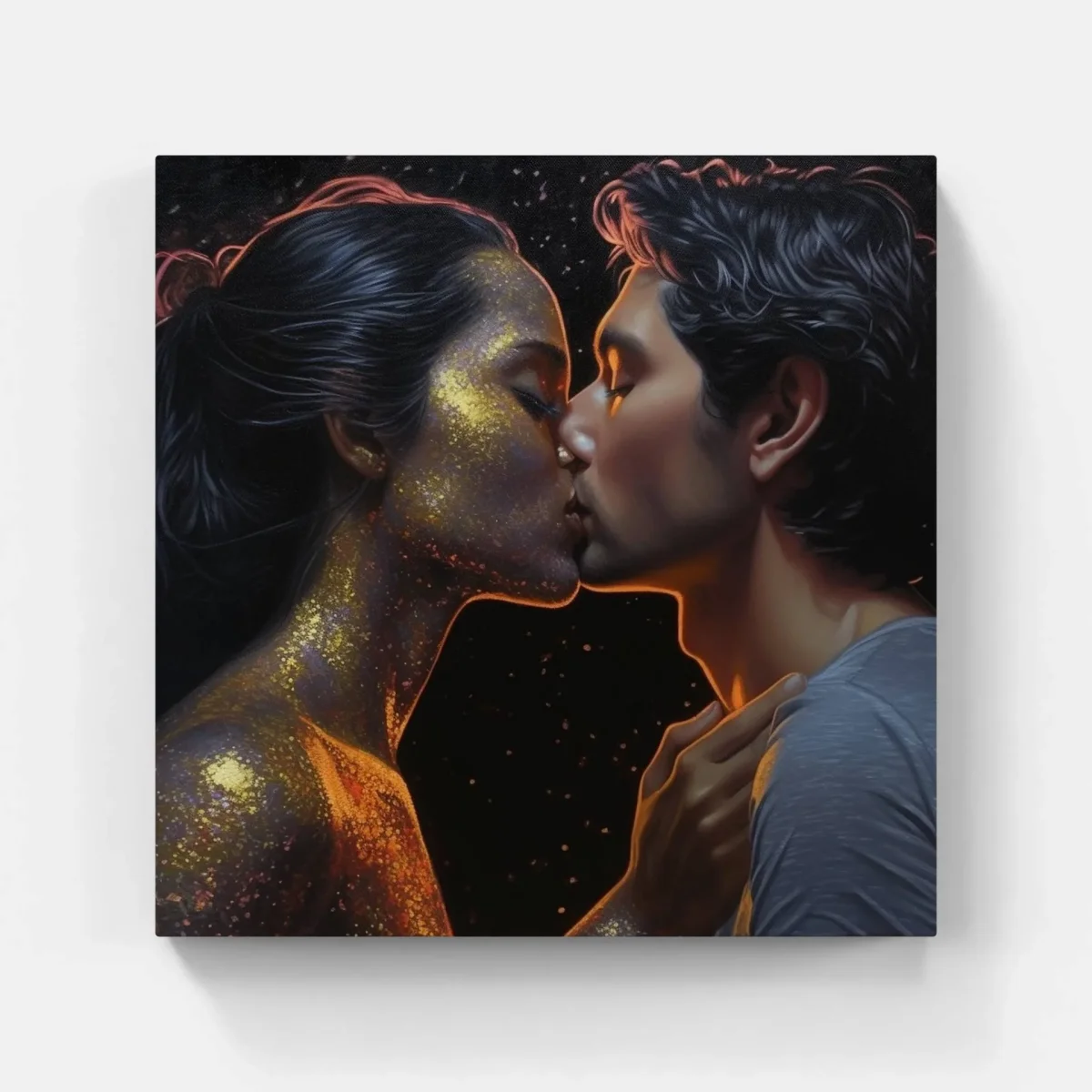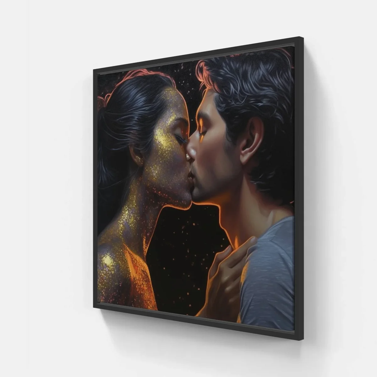 Étreinte chérie capturée sur canva imprimé : homme et femme s’embrassant. Célébrez le pouvoir de l’amour et rehaussez votre décor.