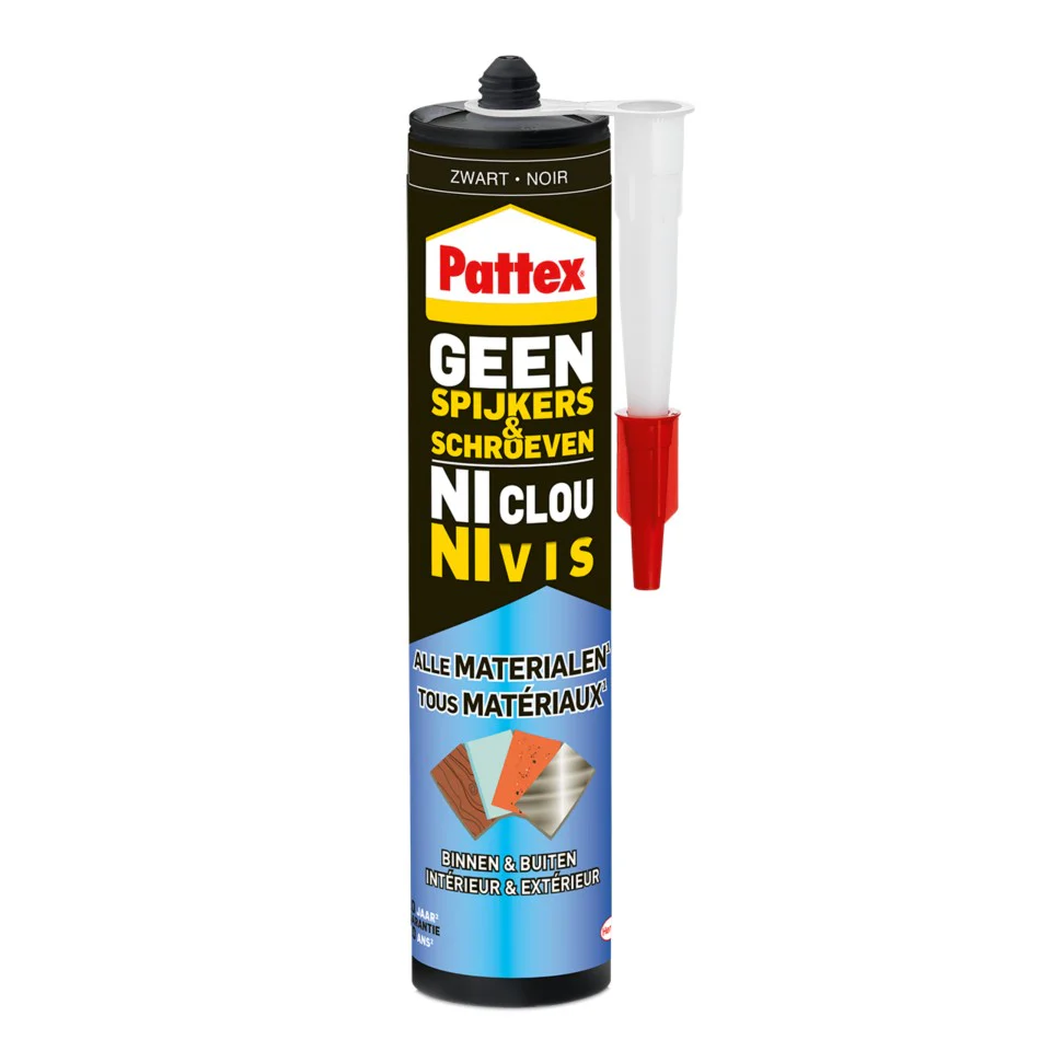 DESCRIPTION Pattex Ni Clou Ni Vis Intérieur & Extérieur Blanc est un mastic de fixation de haute qualité permettant de fixer et étanchéifier. AVANTAGES Couleur: Blanc Pour tous matériaux, toutes conditions et toutes surfaces Extra flexible Résistance finale extra forte Peut être peint