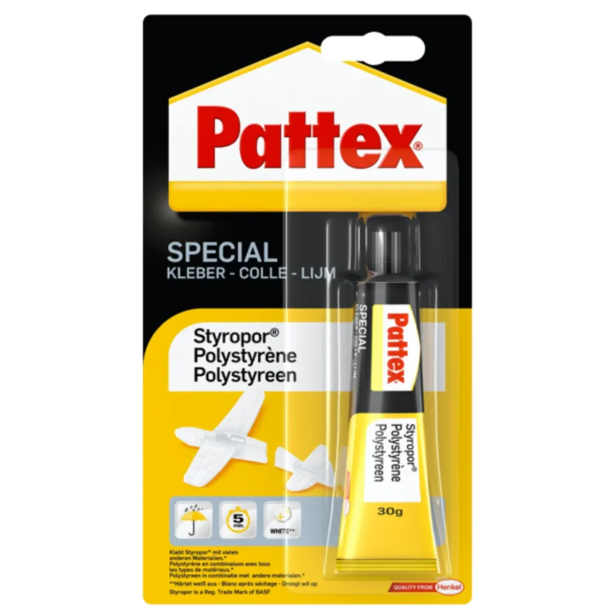 La colle Pattex Spécial polystyrène est spécialement conçue pour le collage de tous les types de mousse polystyrène dure. Cette colle fournit non seulement l’adhérence nécessaire, mais elle est également sûre et très facile à utiliser. Cette colle ne laisse aucune trace après séchage et est résistante à l’eau. L’emballage contient 30 grammes.