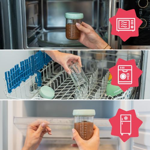 - Conservation saine : Lot de 2 pots en verre qui préservent les saveurs des repas de bébé.