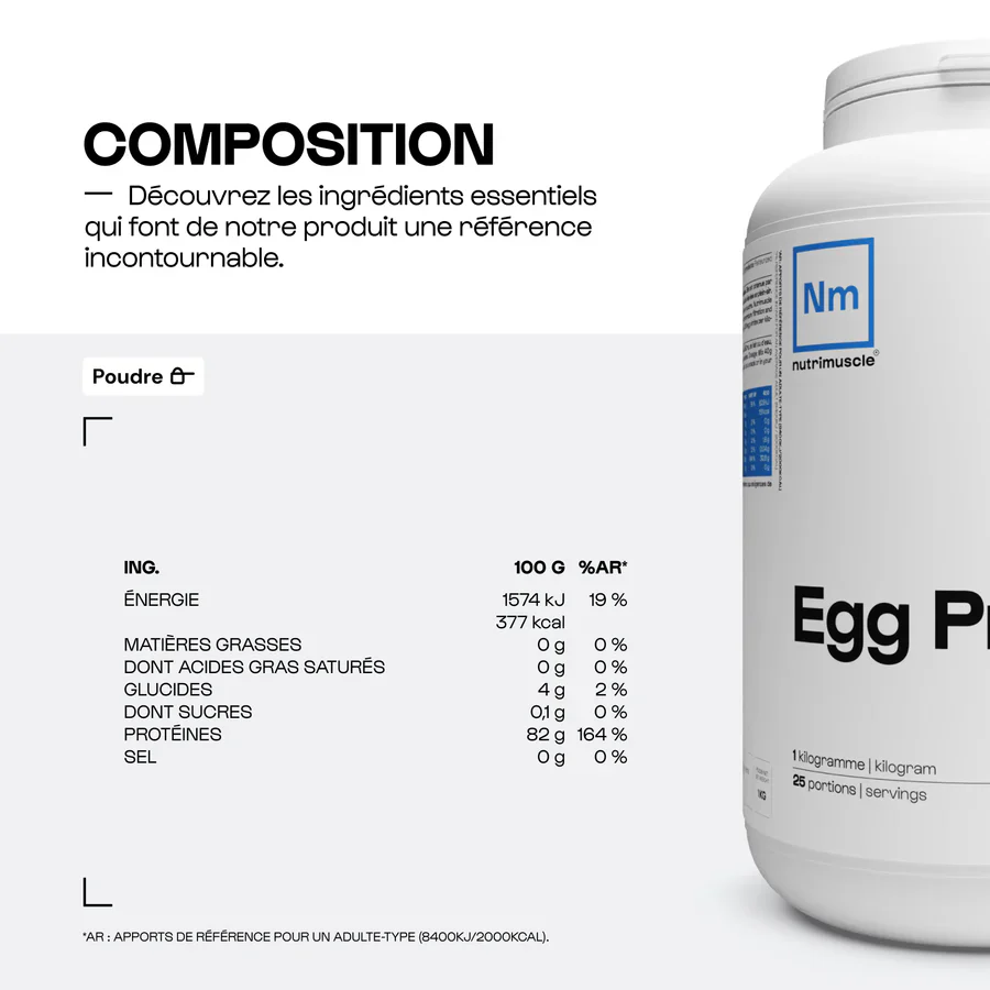 Fabriquée à partir de blancs d’œufs plein air français, cette protéine offre une assimilation lente idéale pour maintenir un apport continu en acides aminés. Sa composition sans gluten et sans caséine en fait un choix optimal pour les régimes restrictifs comme le régime keto.