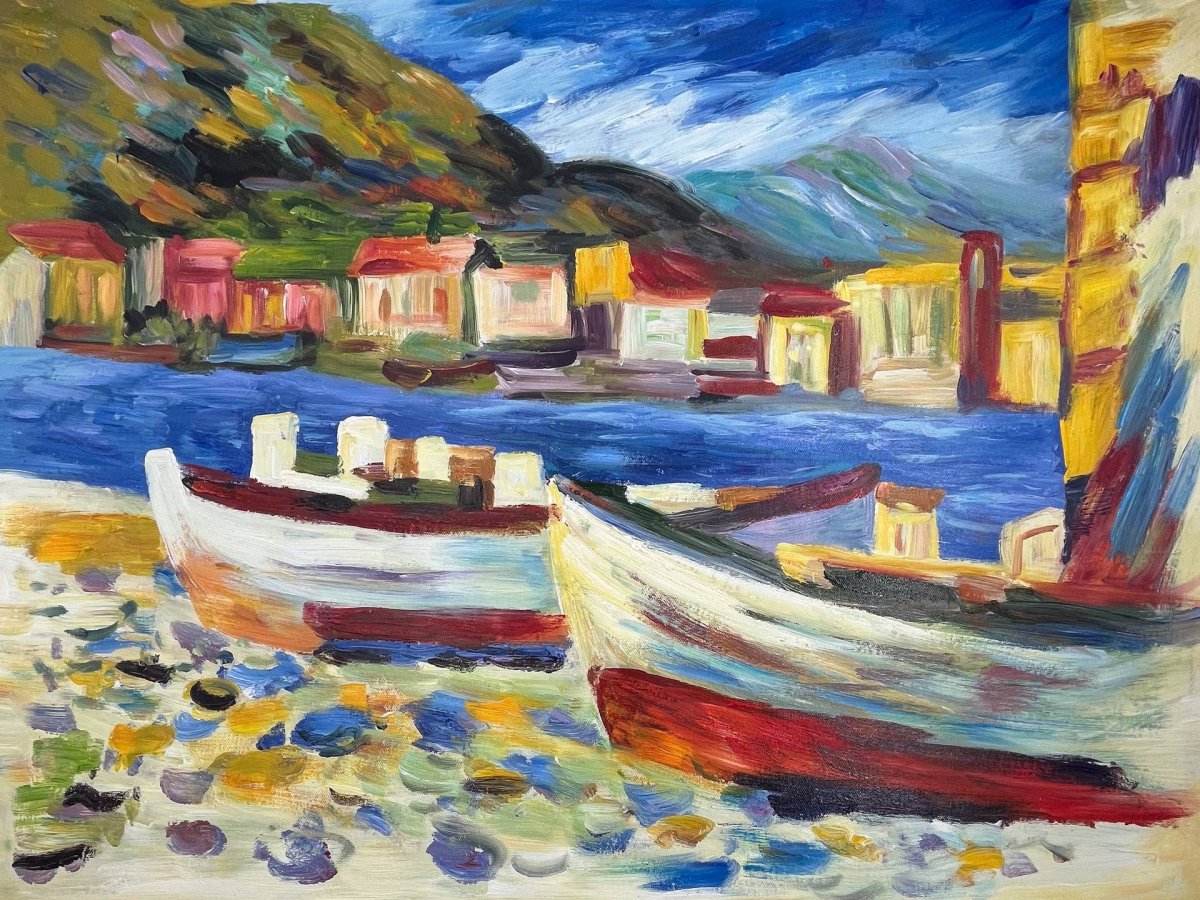 « Rapallo, Bateaux » est une œuvre captivante de Wassily Kandinsky, un artiste pionnier de l’abstraction qui a exploré la relation entre la couleur et la forme. Cette reproduction à l’huile, peinte à la main sur une toile de 60×80 cm en format horizontal, capture l’esprit avant-gardiste de Kandinsky avec ses compositions audacieuses et son utilisation vibrante des couleurs. L’œuvre montre une série de bateaux stylisés à Rapallo, avec des formes simplifiées et des couleurs vibrantes qui reflètent la transition de l’artiste vers l’abstraction.
