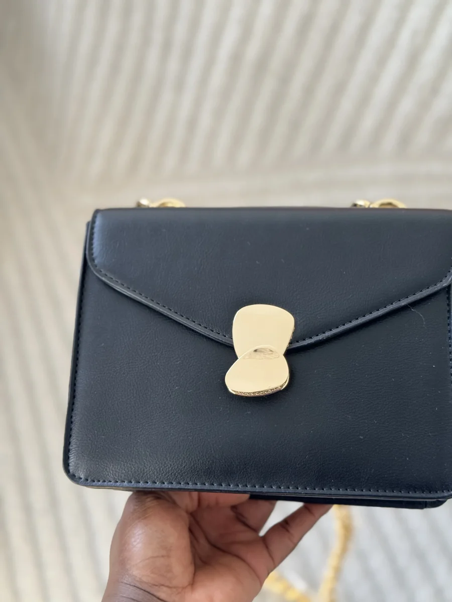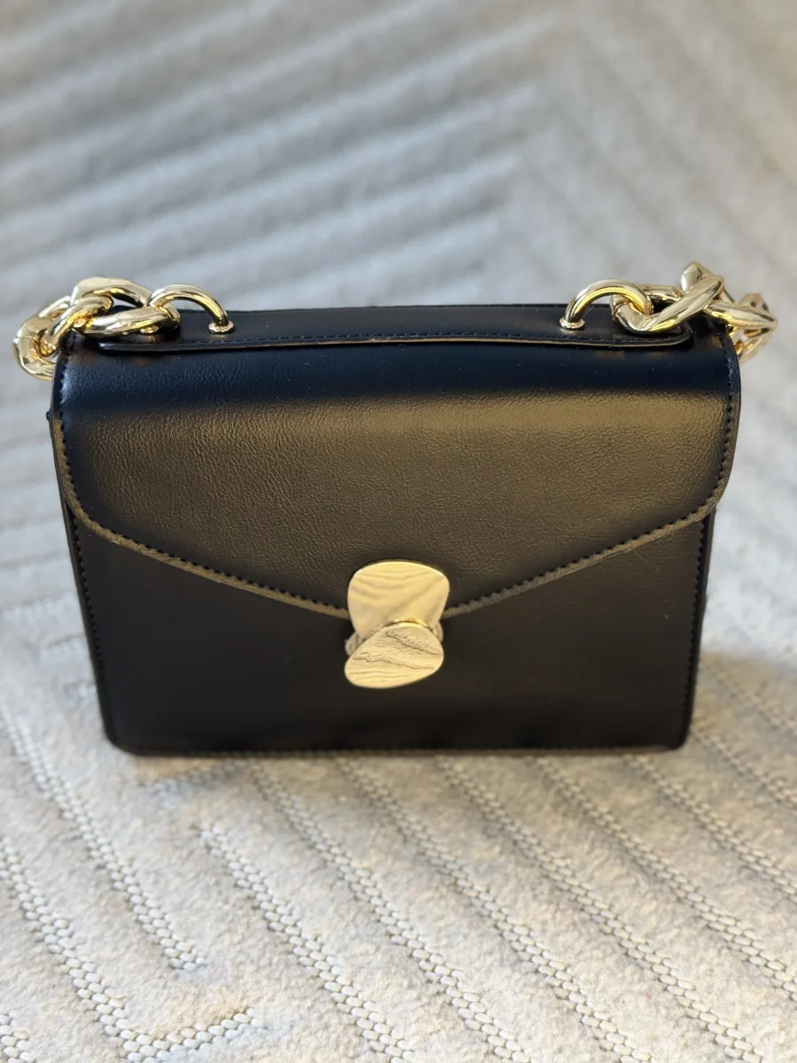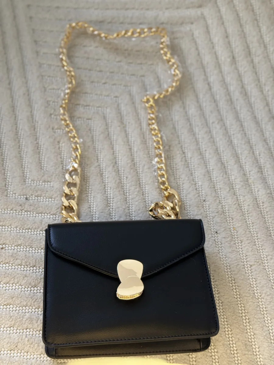 Le sac carré noir avec sa chaine dorée, parfait pour un look sophistiqué. Idéal pour les occasions spéciales ou pour rehausser votre tenue quotidienne. Compact et élégant, ce sac sera votre accessoire incontournable pour toutes les occasions. Prenez-vous au sérieux, mais pas trop avec ce petit sac à la mode!