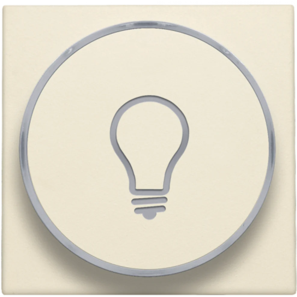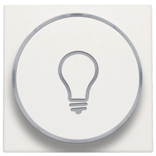 Enjoliveur avec anneau transparent pour bouton-poussoir. L’anneau latéral avec icône lampe fait en sorte que la LED ambre signale que la lumière est allumée. Peut également s’utiliser comme une espèce de lampe-témoin. Couleur de finition: white.