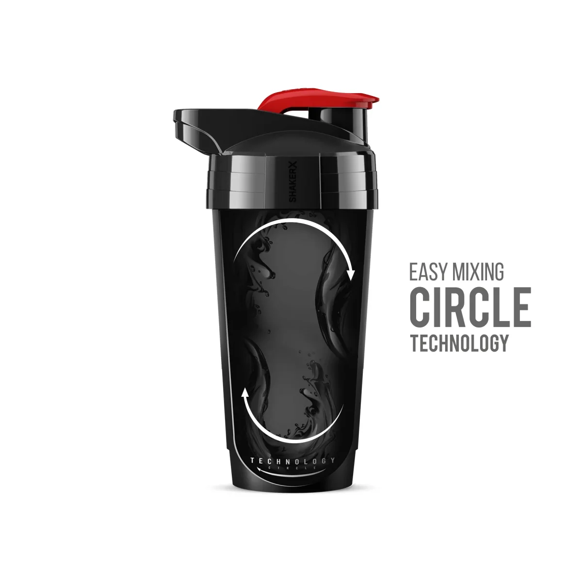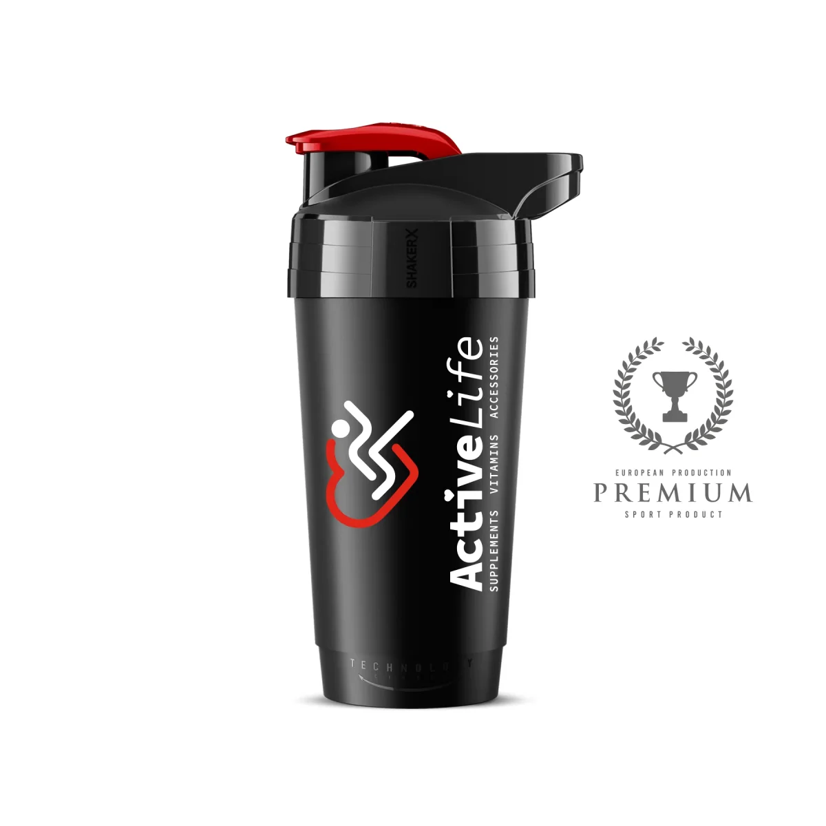 ShakerX Active Life est un shaker révolutionnaire de 700ml conçu pour les sportifs et les personnes actives exigeant excellence et praticité. Grâce à sa technologie innovante « Circle Technology« , ce shaker premium offre un mélange parfaitement homogène en quelques secondes, sans les grumeaux typiques des shakers traditionnels.