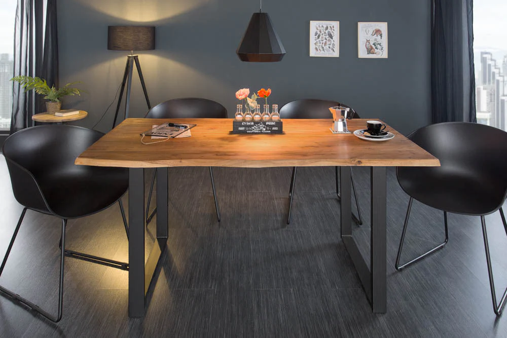 Table à manger en bois massif MAMMUT 140cm bord en acacia sauvage design industriel plateau 2,6cm