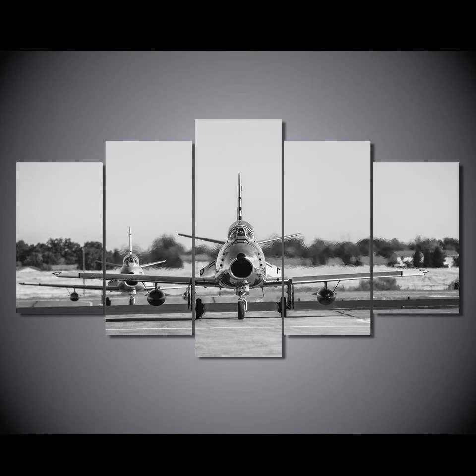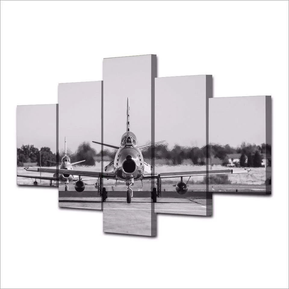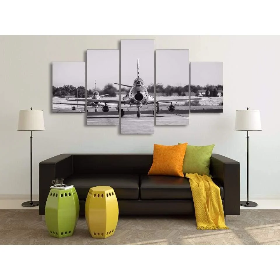 – Tableau, déco murale d’un avion de chasse au départ sur le tarmac.