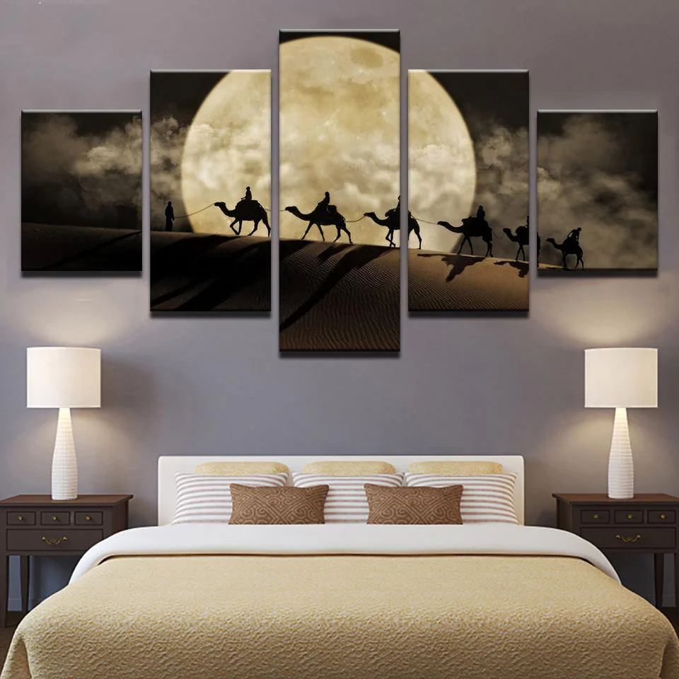 – Tableau, déco murale de la ballade nocturne d’une caravane de dromadaires dans le désert.