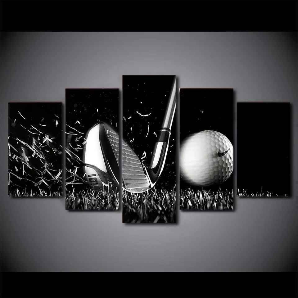 – Tableau, déco murale d’une balle de golf, sur fond noir.