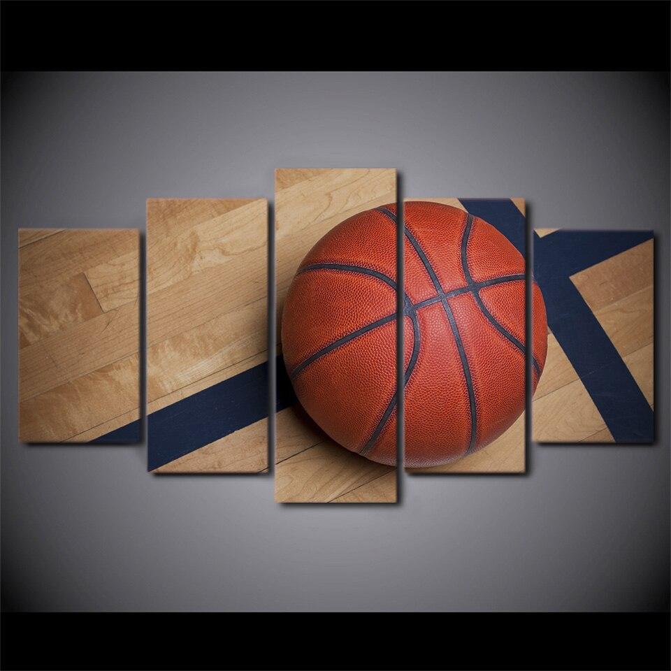 – Tableau, déco murale d’un ballon de basket sur le parquet de terrain.