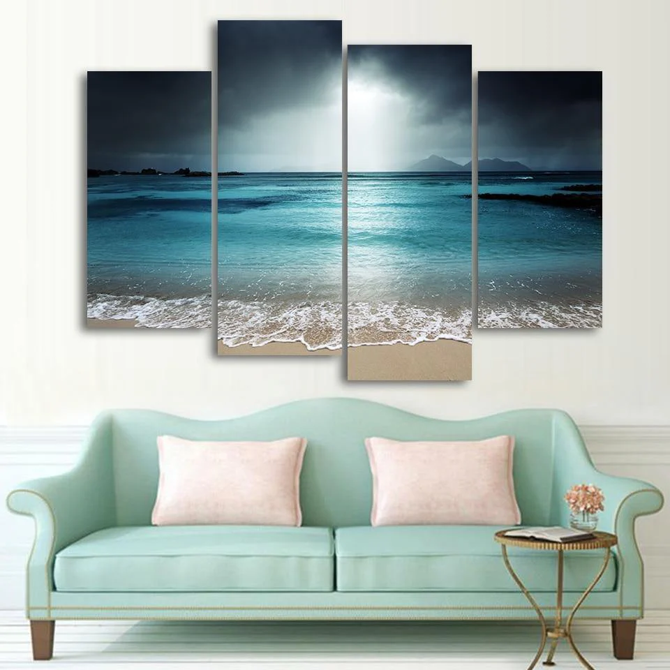 – Tableau, déco murale de paysage de bleus de ciel et mer.