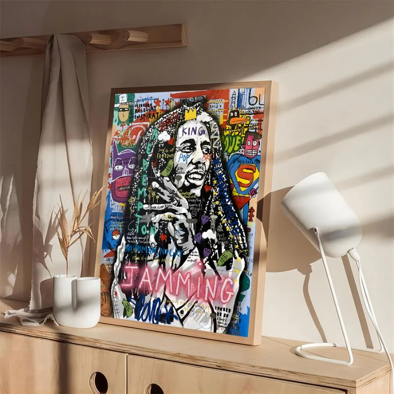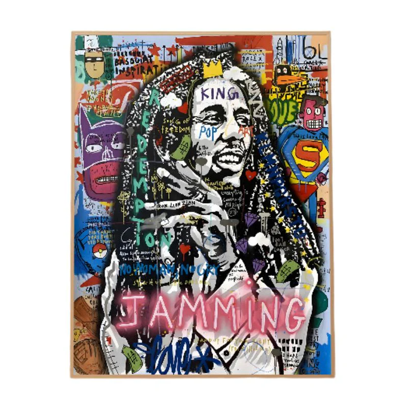 Tableau Bob Marley street art : adoptez le style rasta dans votre déco !