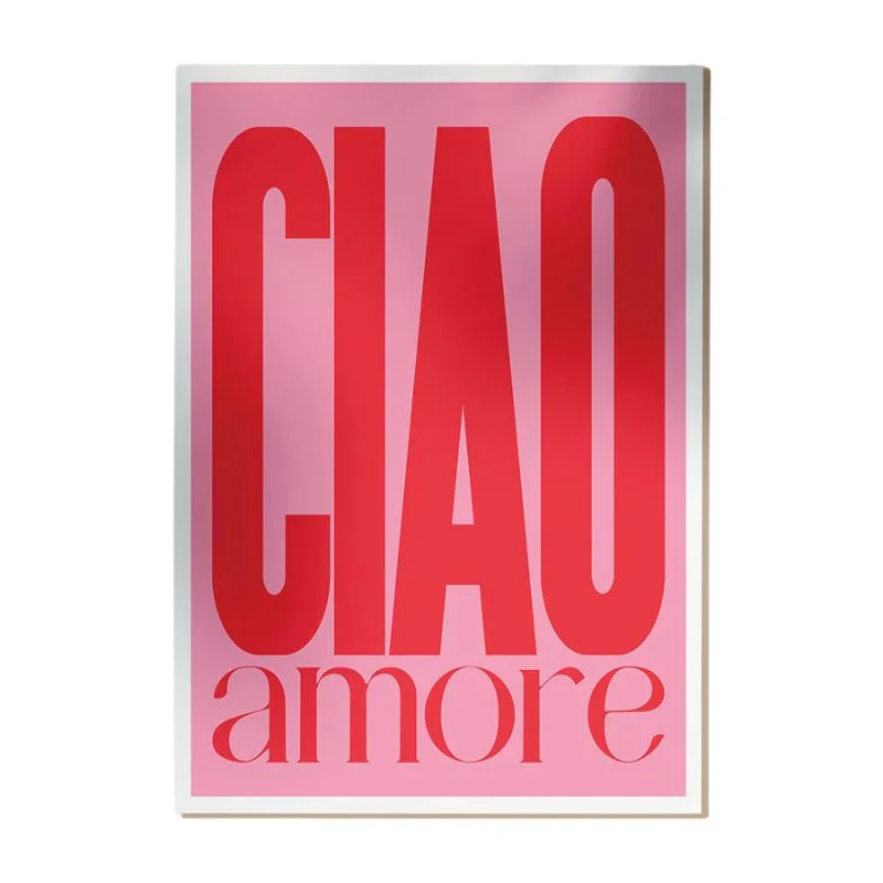 Craquez pour ce sublime tableau ciao amore, une impression sur toile qui apporte une touche de couleur et une dose de tendresse à votre intérieur.