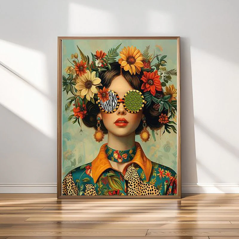 Ce tableau décoratif est le portrait d’une femme au style bohème, sublimée par des fleurs colorées dans les cheveux. Il se distingue par ses couleurs éclatantes et son style boho-chic qui s’harmonise avec toute sorte d’intérieurs !