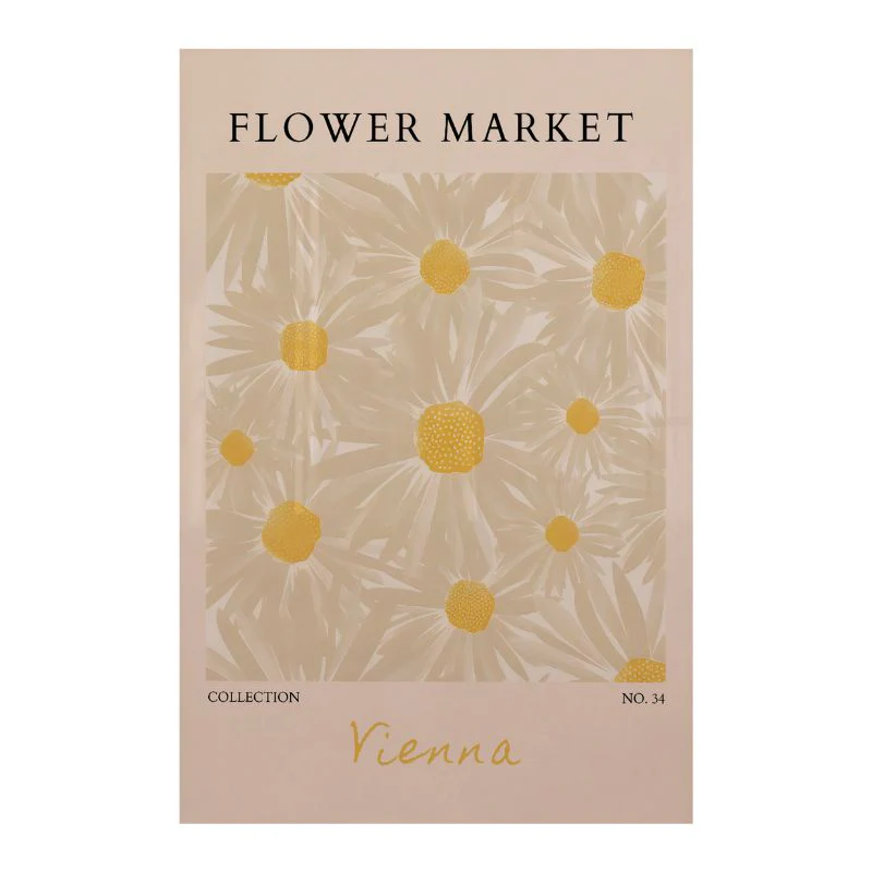 Inspiré des étals de fleurs de rue et des ambiances parisiennes, ce tableau décoratif « Flower Market » évoque l’instantané d’un bouquet de fleurs printanières. Avec sa palette de couleurs fraîche, ses typos basiques et son aspect vintage, cette impression sur toile est une pièce à avoir dans sa déco. Cette reproduction de peinture sur toile est parfaite pour ajouter une touche de gaieté dans n’importe quel espace, que ce soit au niveau de l’entrée, de la cuisine ou encore dans un lieu de travail.