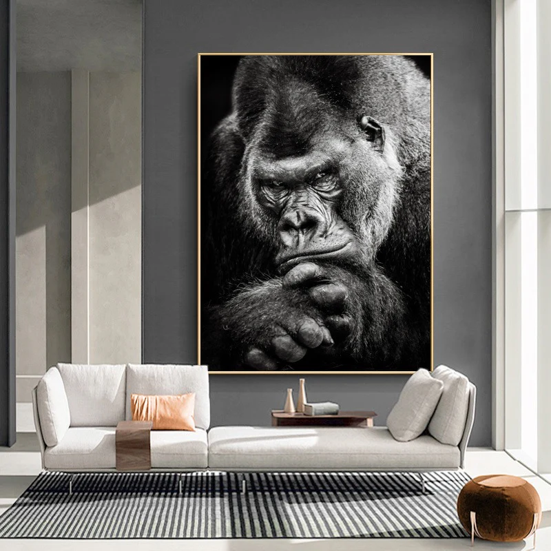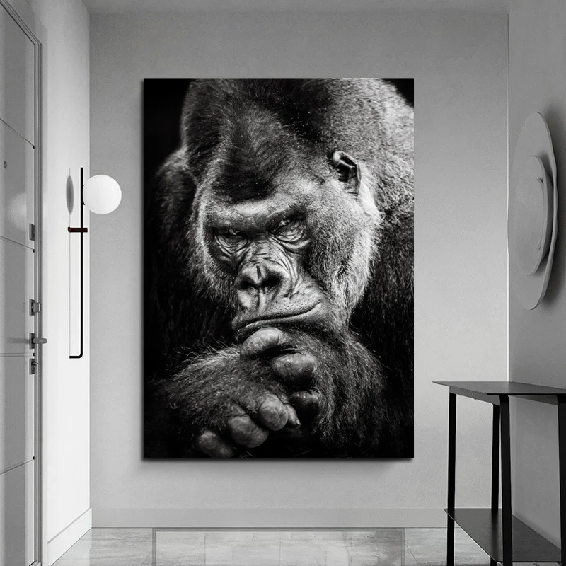 Tableau gorille noir et blanc : la puissance en noir et blanc