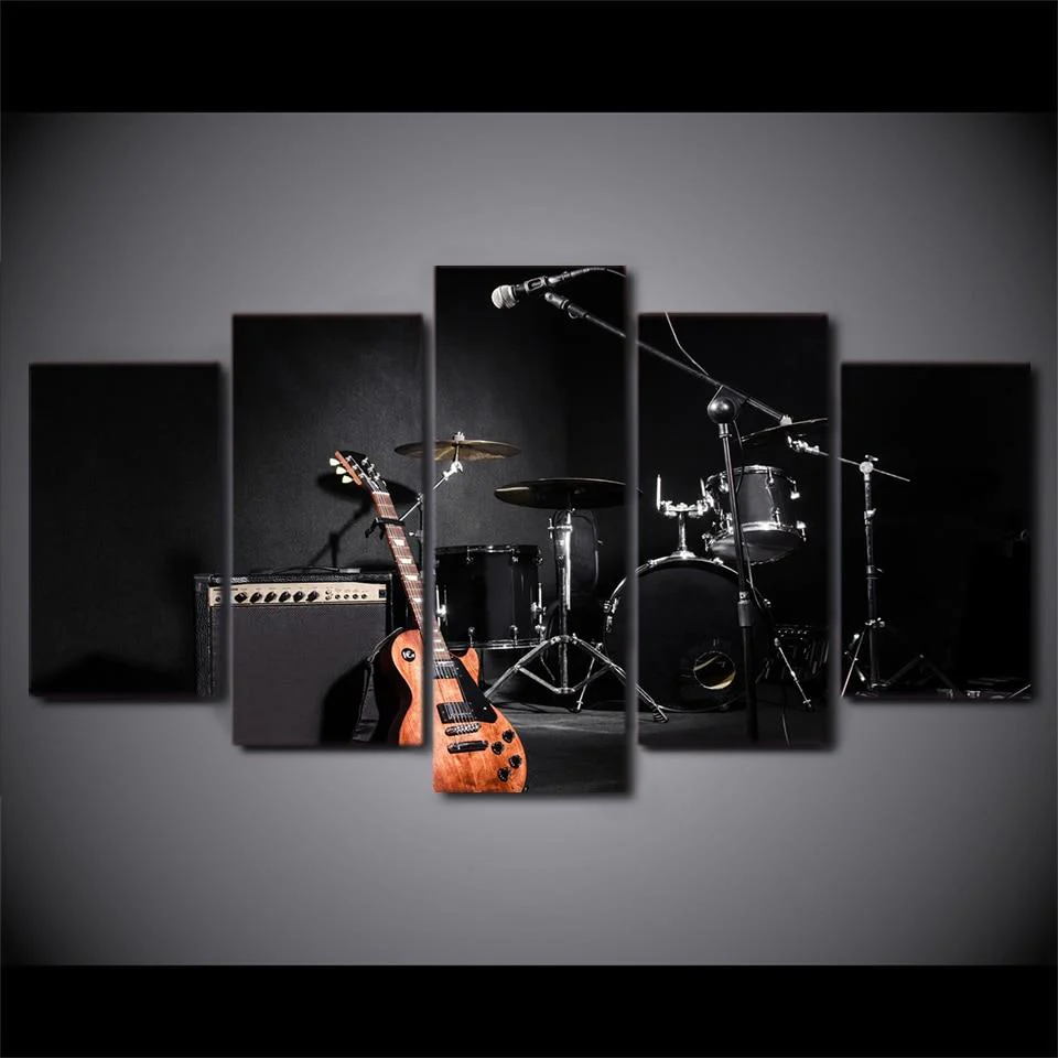 – Tableau, déco murale d’une scène accueillant guitare et batterie.