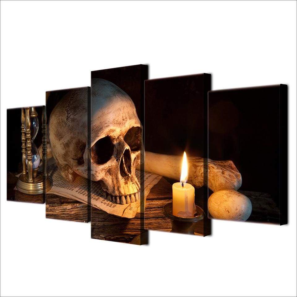 – Tableau, déco murale de la lueur d’un bougie sur un crâne humain.