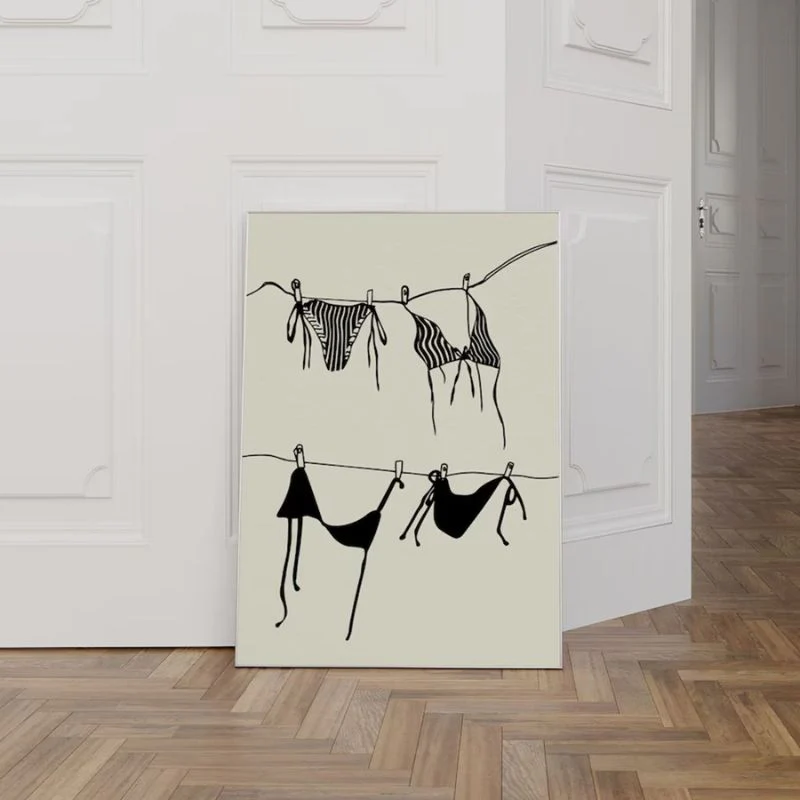 C’est un tableau décoratif unique en son genre, qui met en scène des bikinis étendus sur une corde à linge, évoquant des souvenirs de vacances estivales. Disponible en plusieurs formats, cette impression sur toile trouvera facilement sa place dans une chambre ou une salle de bain, vous permettant d’habiller vos murs de manière originale. Parfaite idée-cadeau, ce tableau décoratif saura séduire son détenteur. Commandez le vôtre dès maintenant !