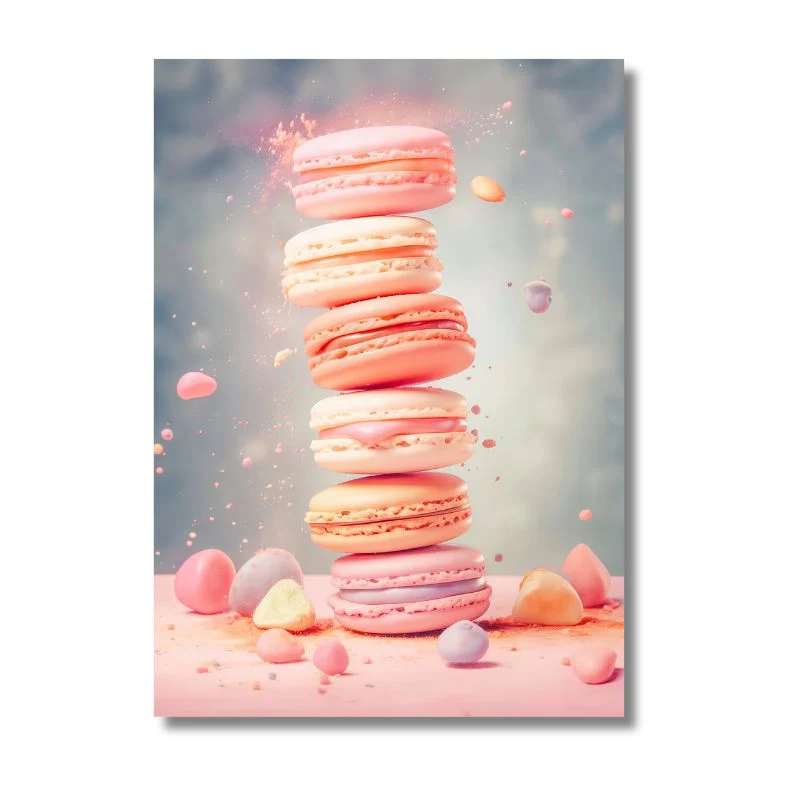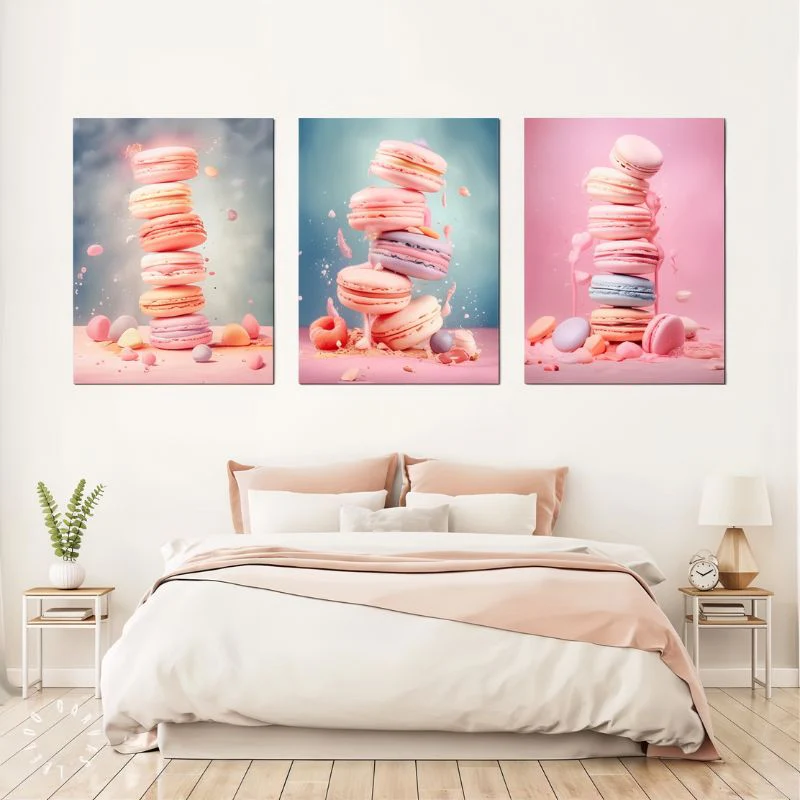 Ajoutez une touche de douceur à votre décoration murale avec ce magnifique ensemble de tableaux macarons. Chaque toile montre une tour de macarons aux couleurs pastel, un mélange entre art et gourmandise. Les nuances de rose, de bleu et de crème se mêlent harmonieusement pour évoquer des sensations de légèreté et de plaisir sucré. Parfait pour décorer votre cuisine, salon ou salle à manger, cet ensemble apporte une ambiance joyeuse. Les détails et les couleurs de ces tableaux macarons éveillent les sens et ajoutent une touche d’élégance de la pâtisserie française à votre décoration intérieure. Une véritable célébration de la gourmandise et de la beauté.