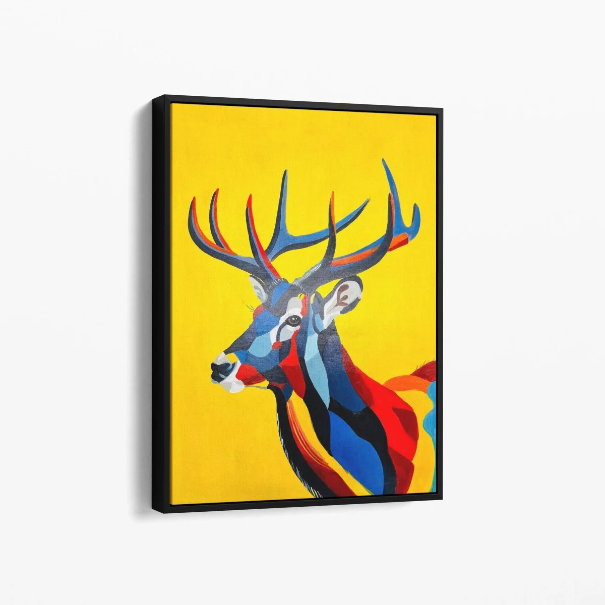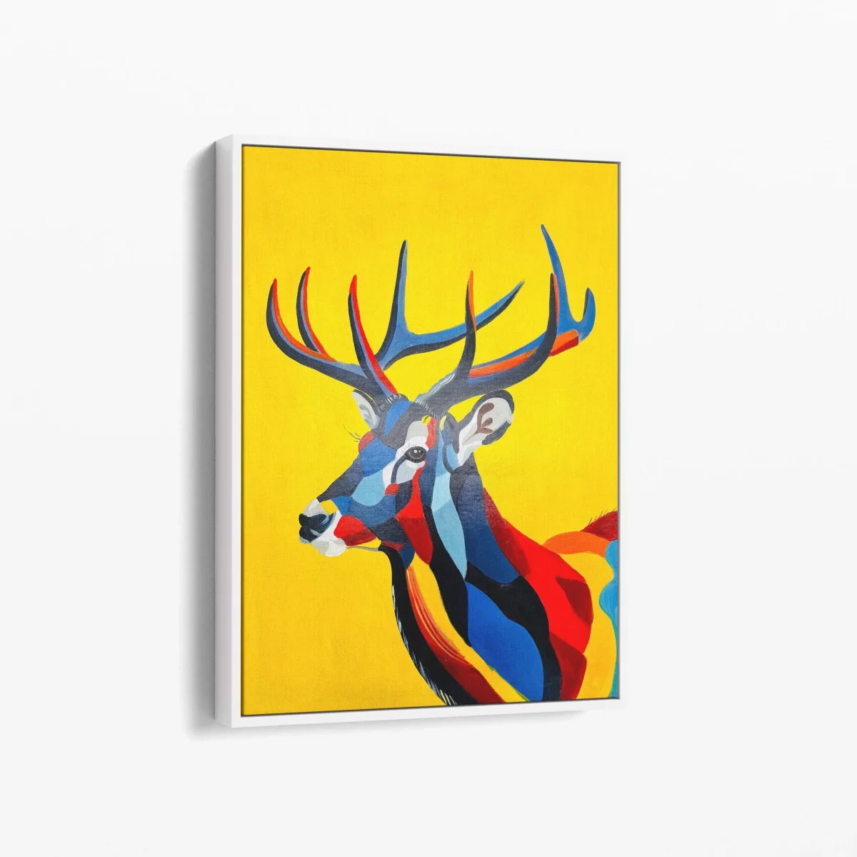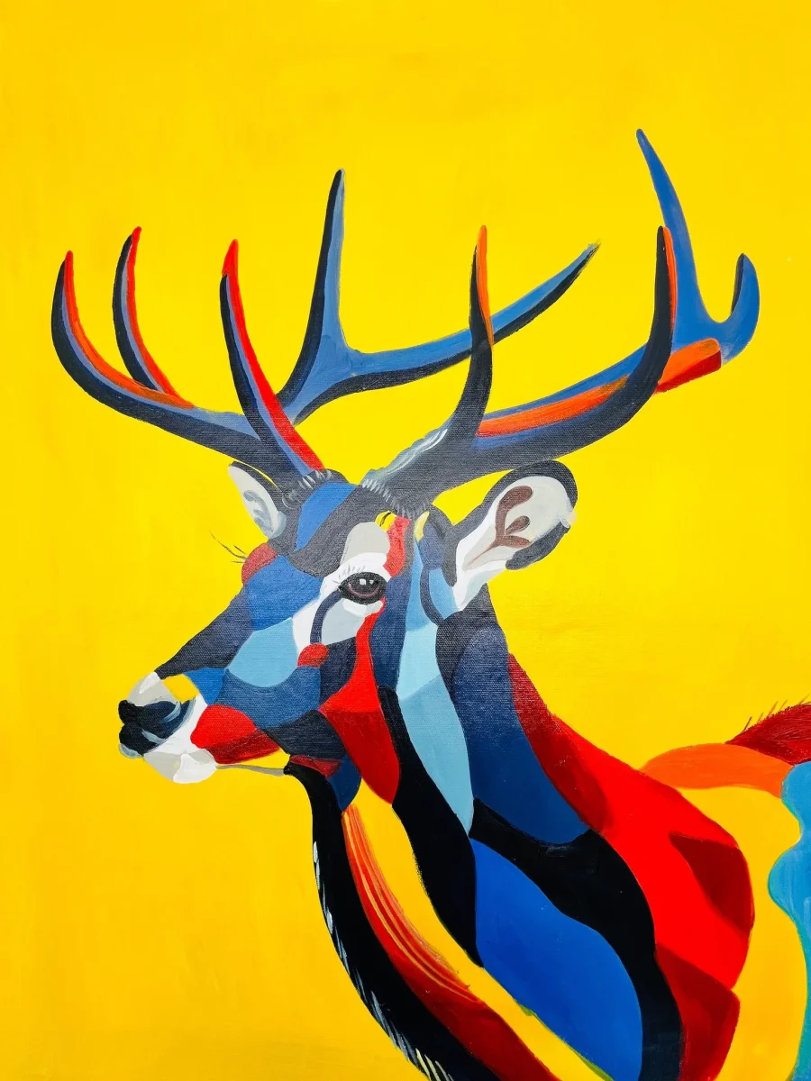 - Thème : La forme svelte et élégante d’un cerf, représentée avec une simplicité raffinée, rehaussée par des accents de couleurs pop pour un contraste visuel saisissant.