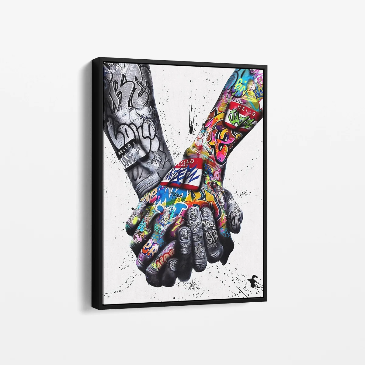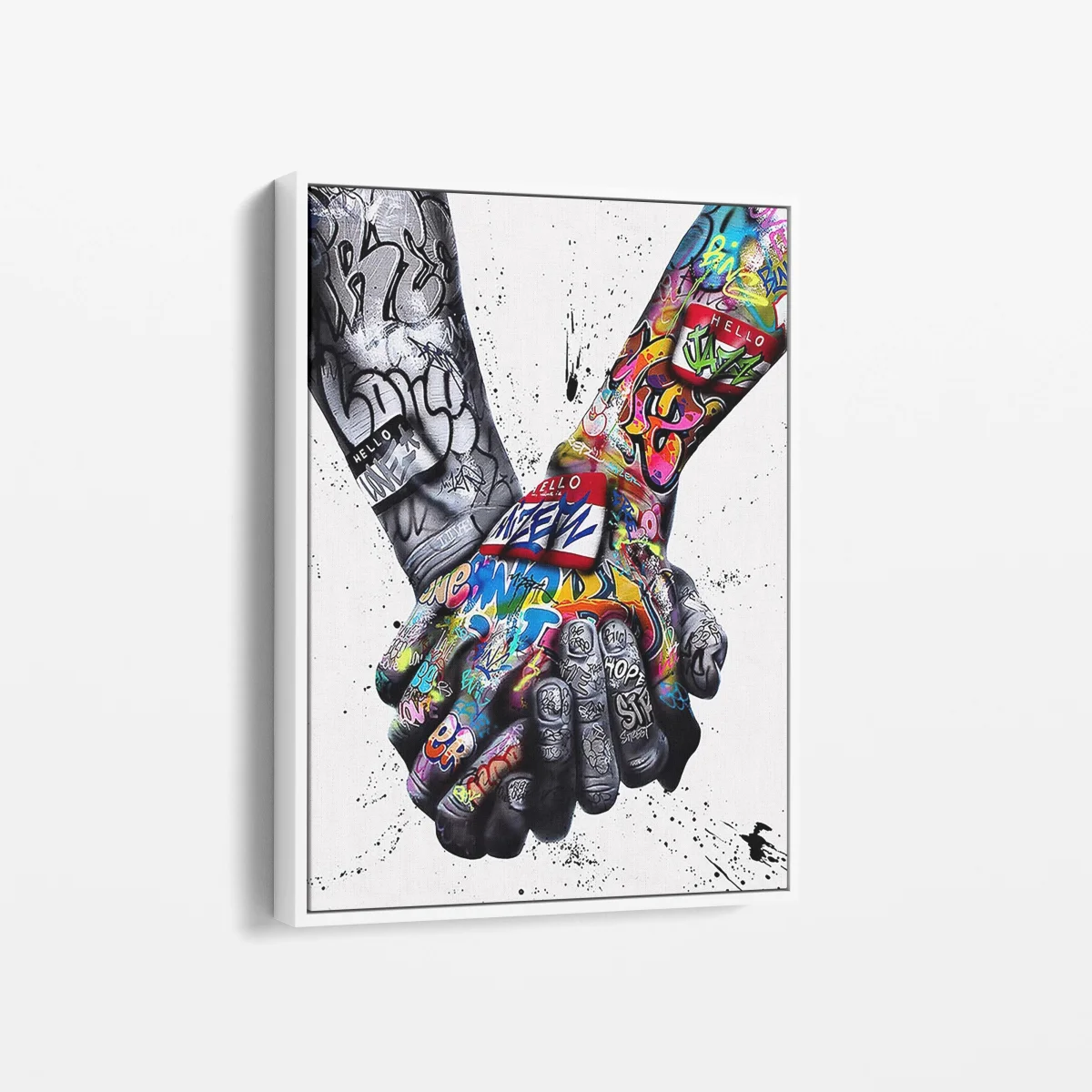 Exprimez la force de l’unité et de la solidarité avec « Union Graffiti », une œuvre puissante qui réinvente un geste universel à travers l’art urbain. Ce tableau captivant représente deux mains entrelacées, ornées de graffitis colorés et dynamiques, symbolisant l’unité dans la diversité. Imprimé sur toile et tendu sur un châssis en bois, « Union Graffiti » est une déclaration visuelle forte, idéale pour inspirer et dynamiser votre intérieur.
