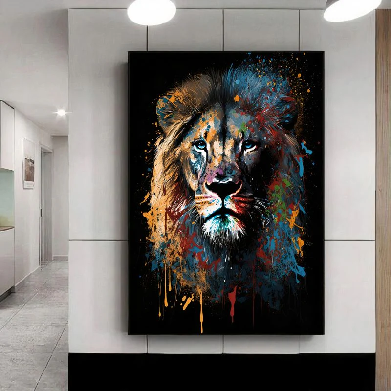 Découvrez notre tableau reproduction peinture aquarelle lion, une impression sur toile style pop art, pensée pour apporter une touche artistique à votre déco ! Ce tableau décoratif imprimé sur toile représente un majestueux lion dans un style aquarelle street art. Idéale pour ajouter du caractère à votre déco, cette reproduction de peinture sur toile se distingue par son mélange de couleurs qui crée un effet de profondeur saisissant. Disponible en plusieurs tailles, cette impression sur toile s’intègre aisément dans un salon, une chambre ou même un bureau, attirant les regards de tous vos convives.